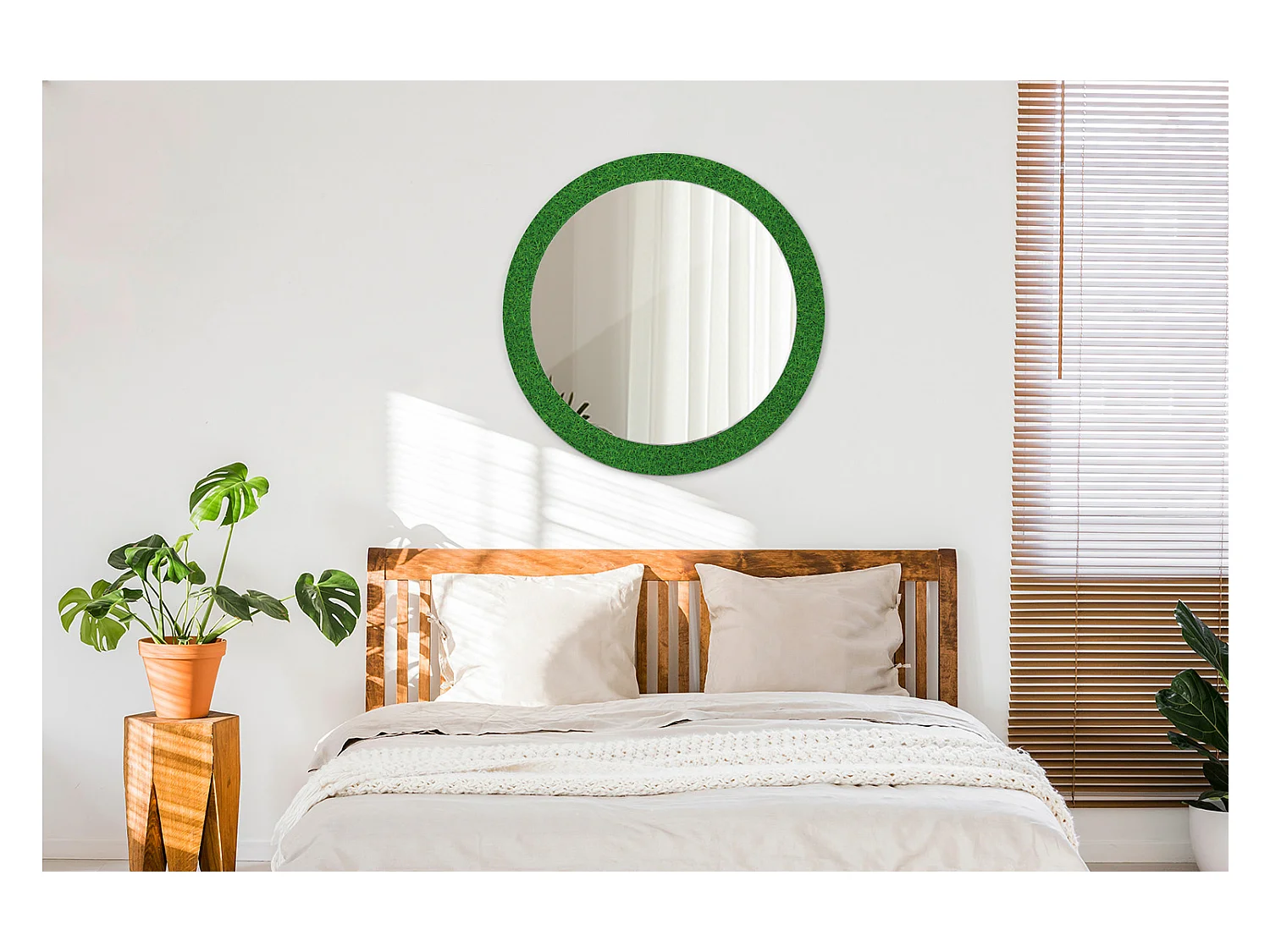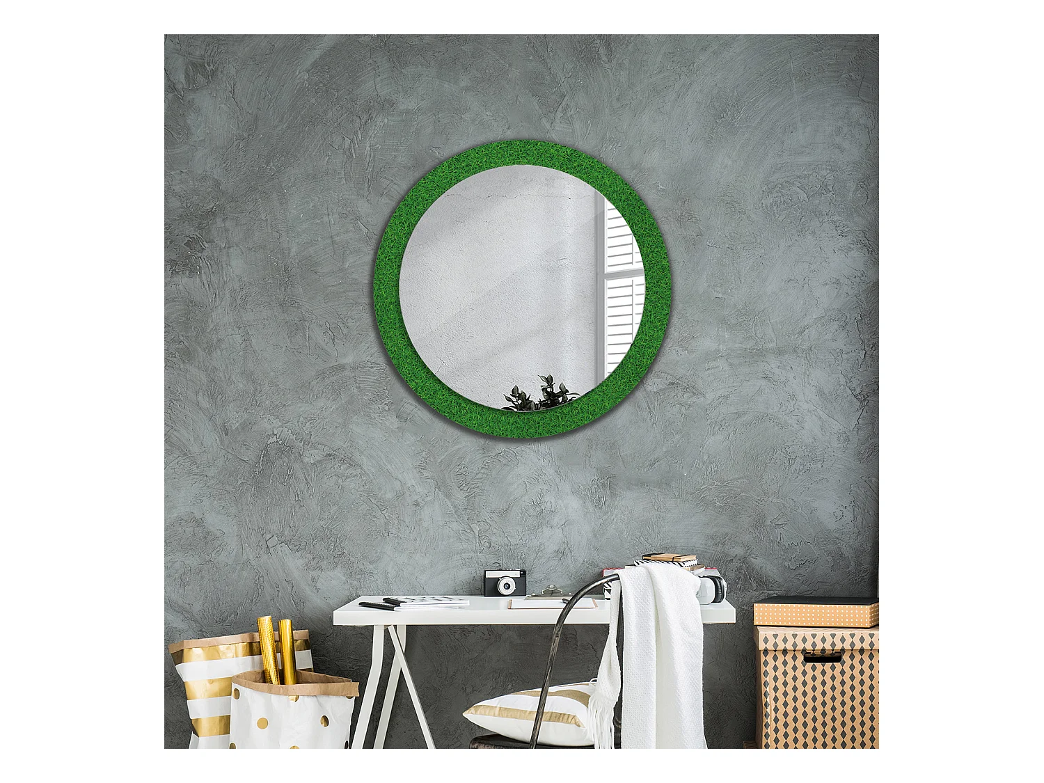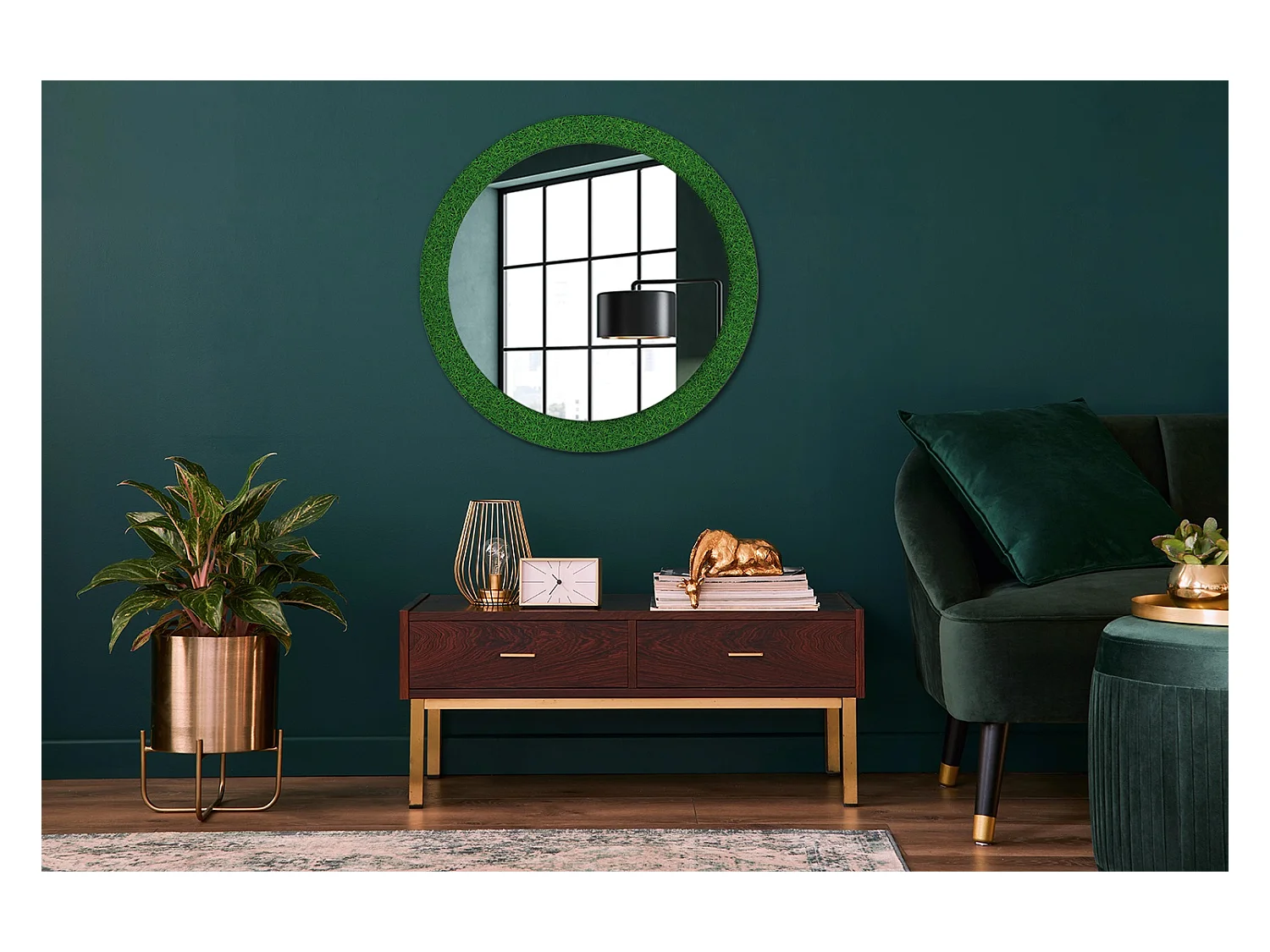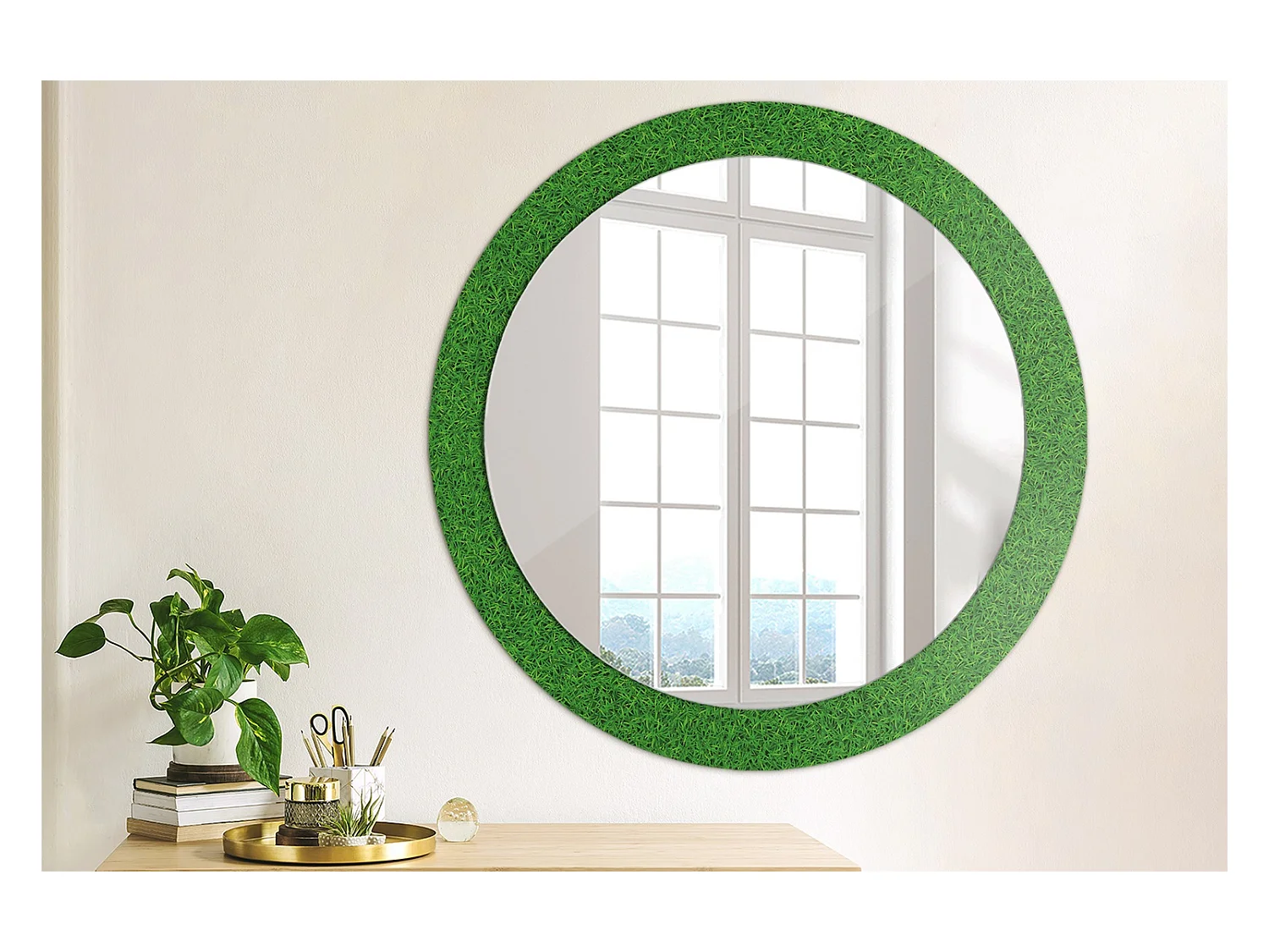Miroir rond décoratif - Herbe verte - 80 cm