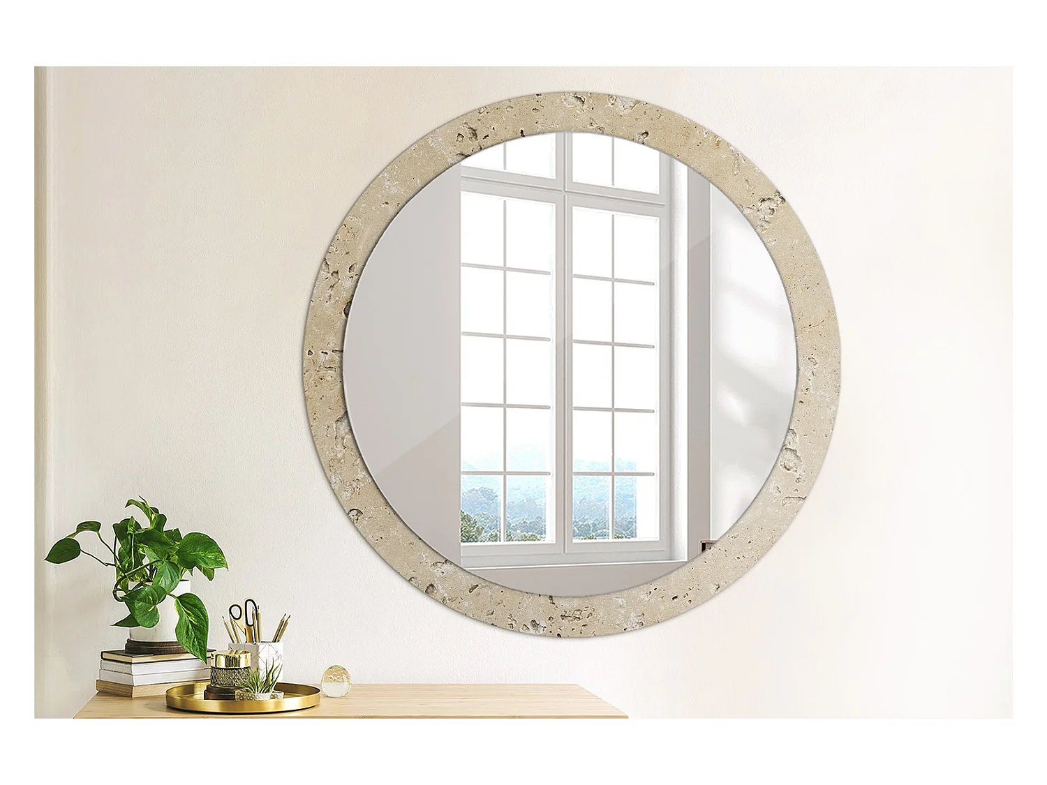 Miroir rond décoratif - Imitation pierre - 90 cm