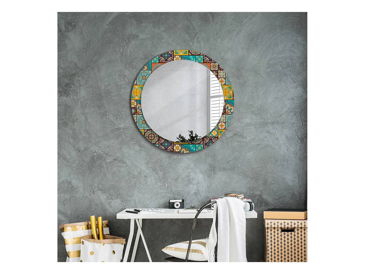 Miroir rond décoratif - Ornements géométriques - 70 cm