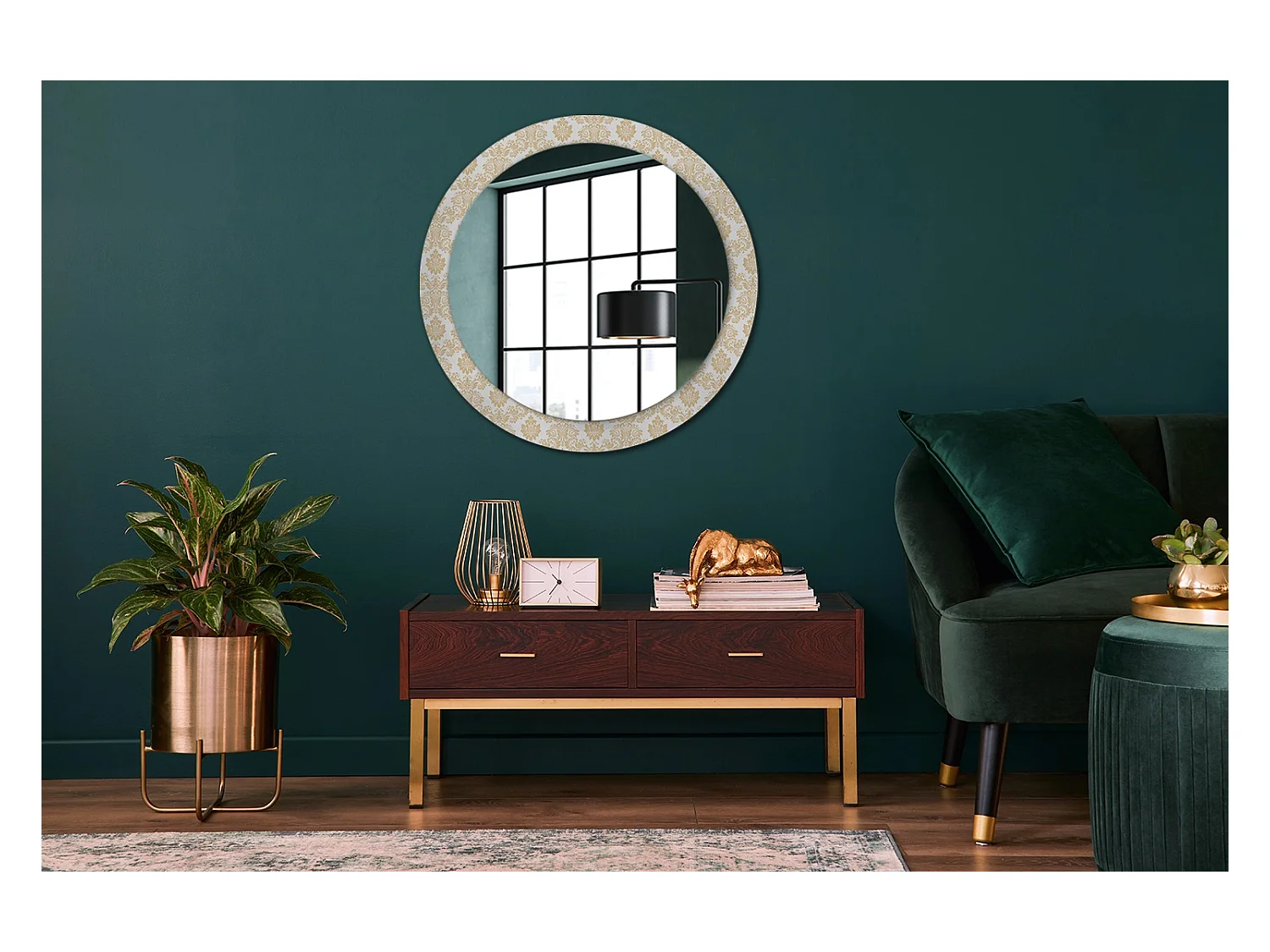 Miroir rond décoratif - Fruits et feuilles géométriques - 80 cm