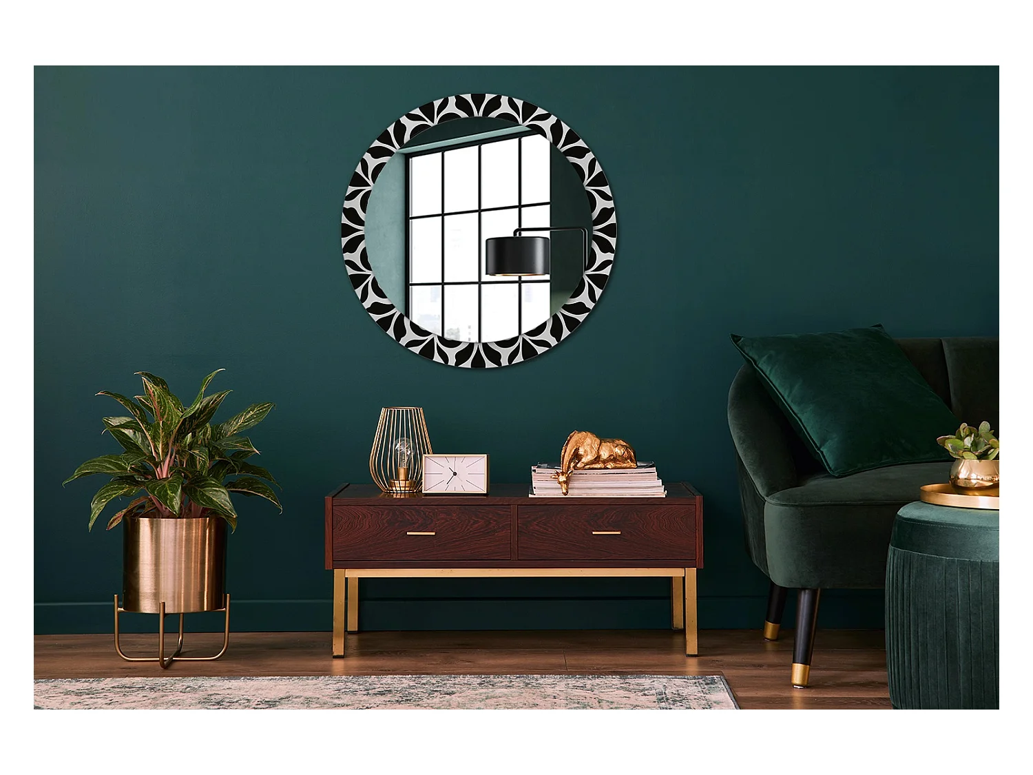 Miroir rond décoratif - Fruits et feuilles géométriques - 80 cm
