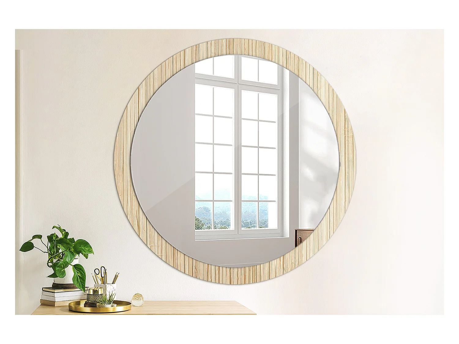 Miroir rond décoratif - Paille de bambou - 100 cm