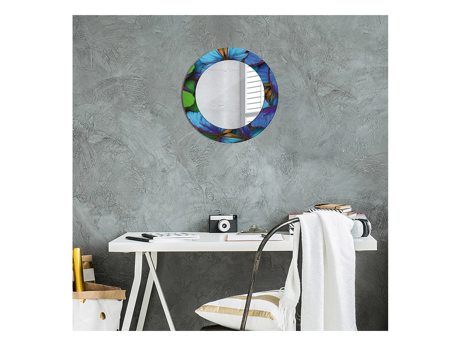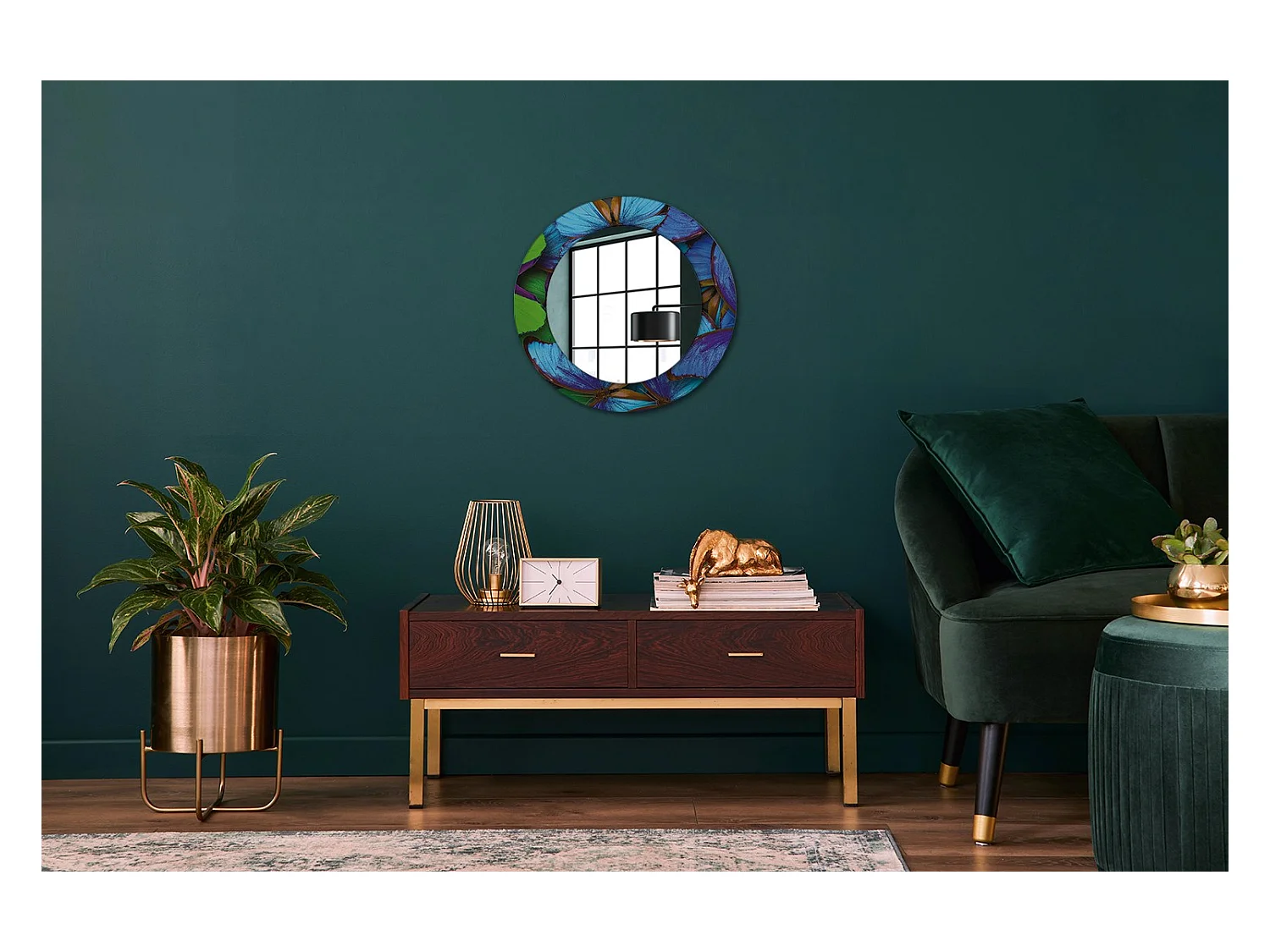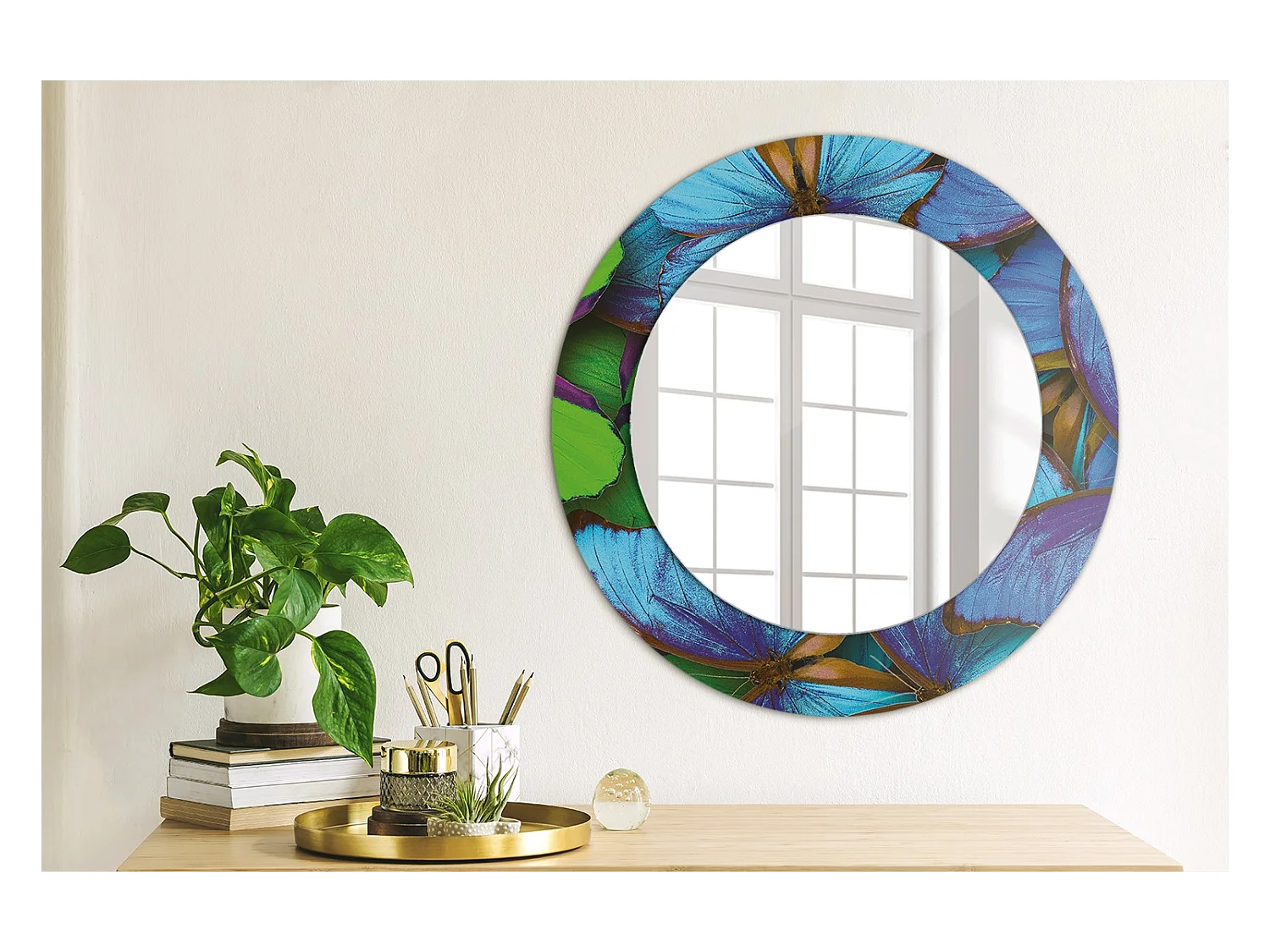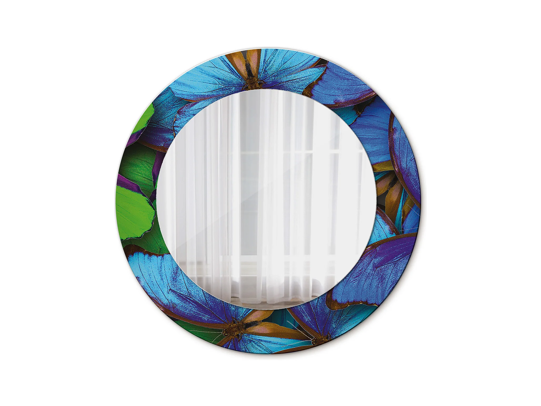 Miroir rond décoratif - Papillon bleu et vert - 50 cm