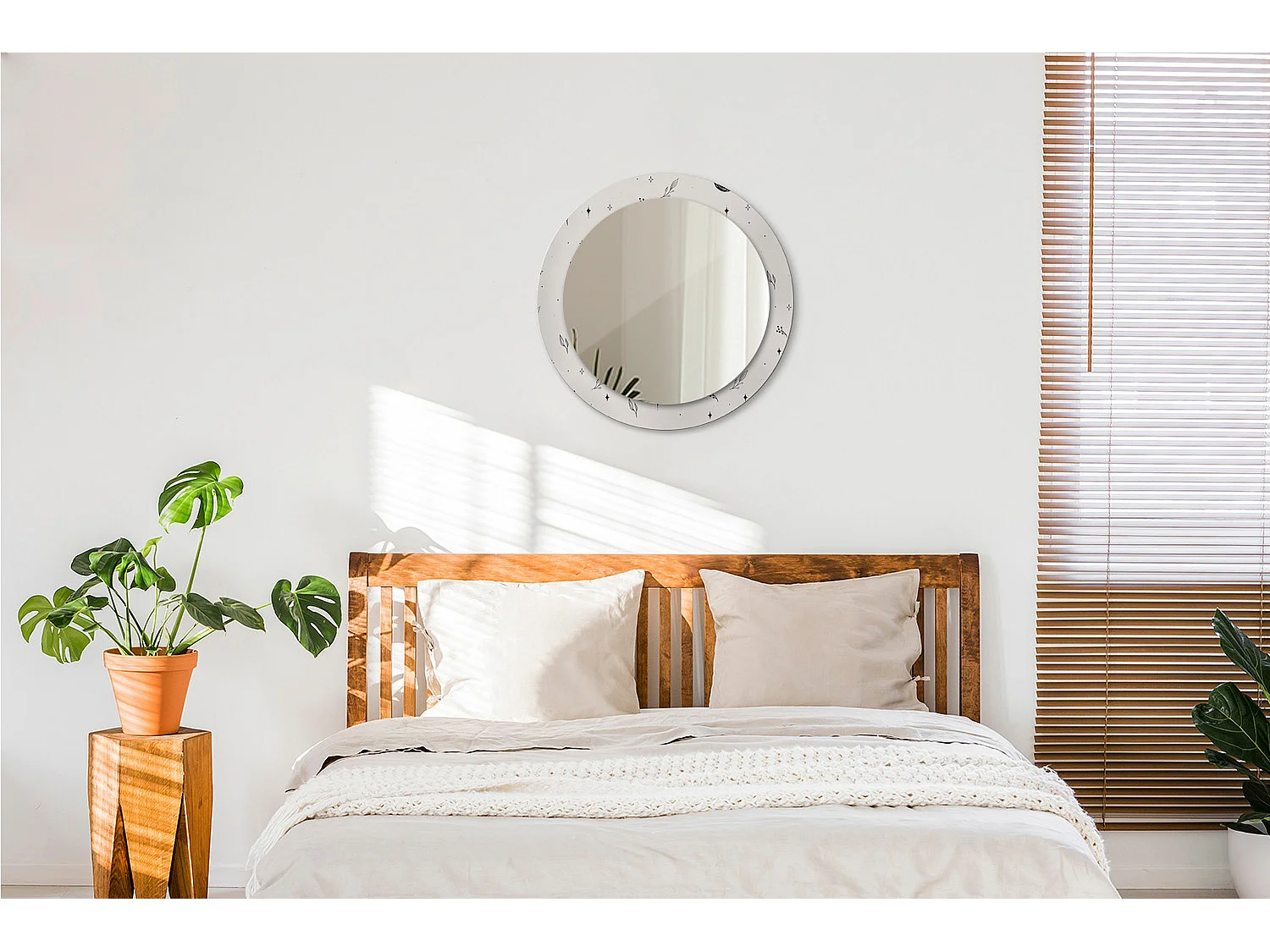 Miroir rond décoratif - Plantes Doodle - 70 cm