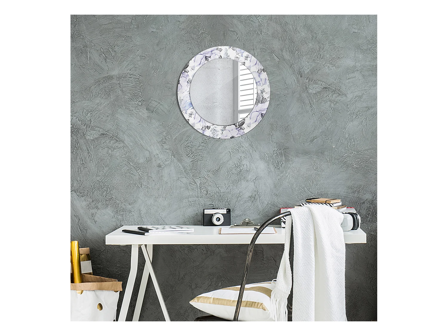 Miroir rond décoratif - Fleurs bleues - 50 cm