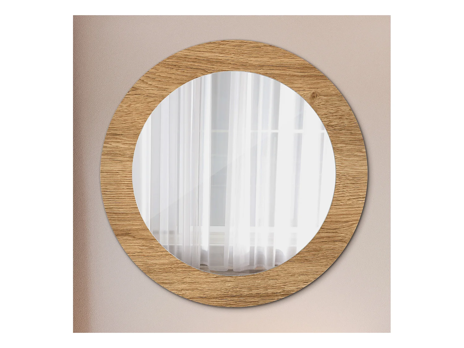 Miroir rond décoratif - Texture bois - 70 cm