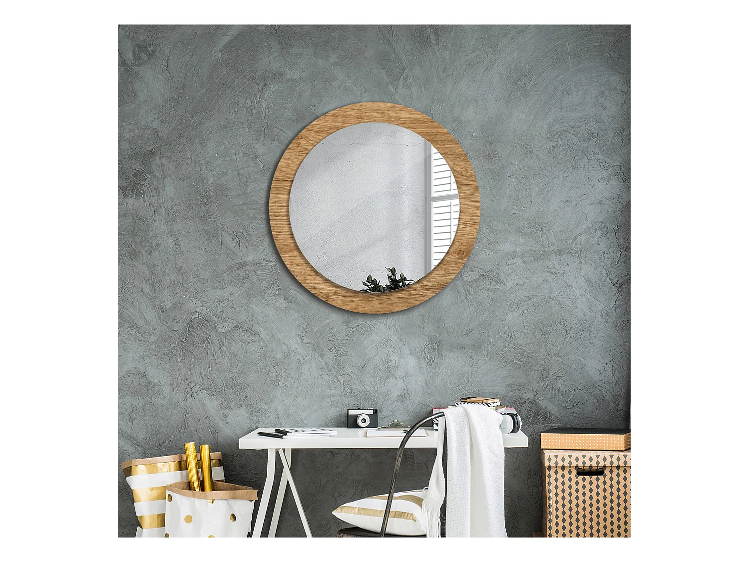 Miroir rond décoratif - Texture béton - 70 cm