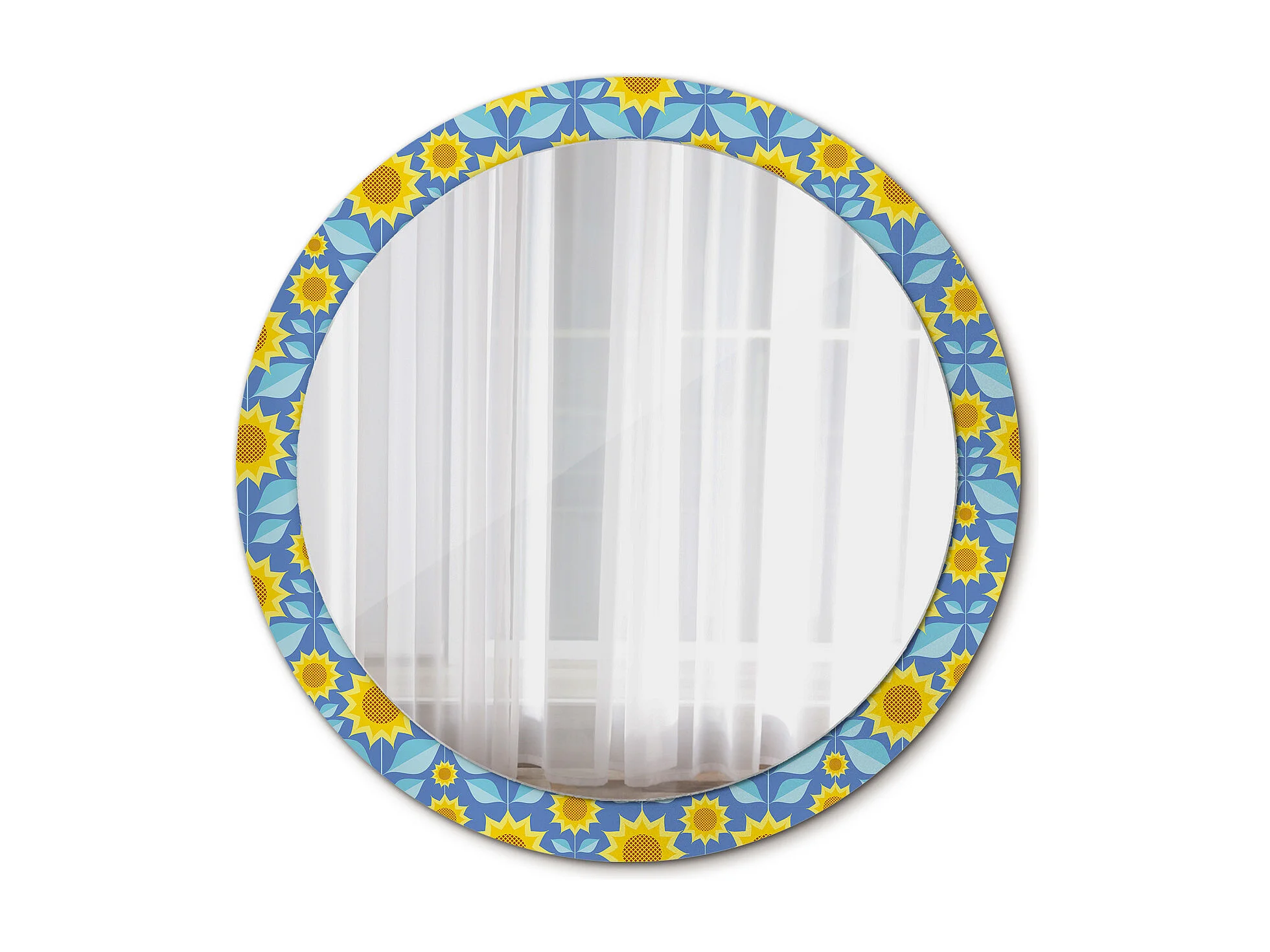 Miroir rond décoratif - Tournesols géométriques - 90 cm