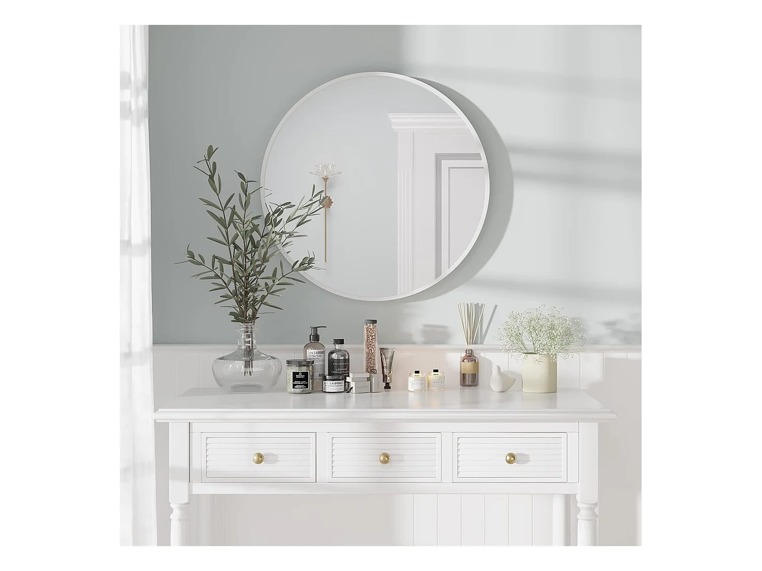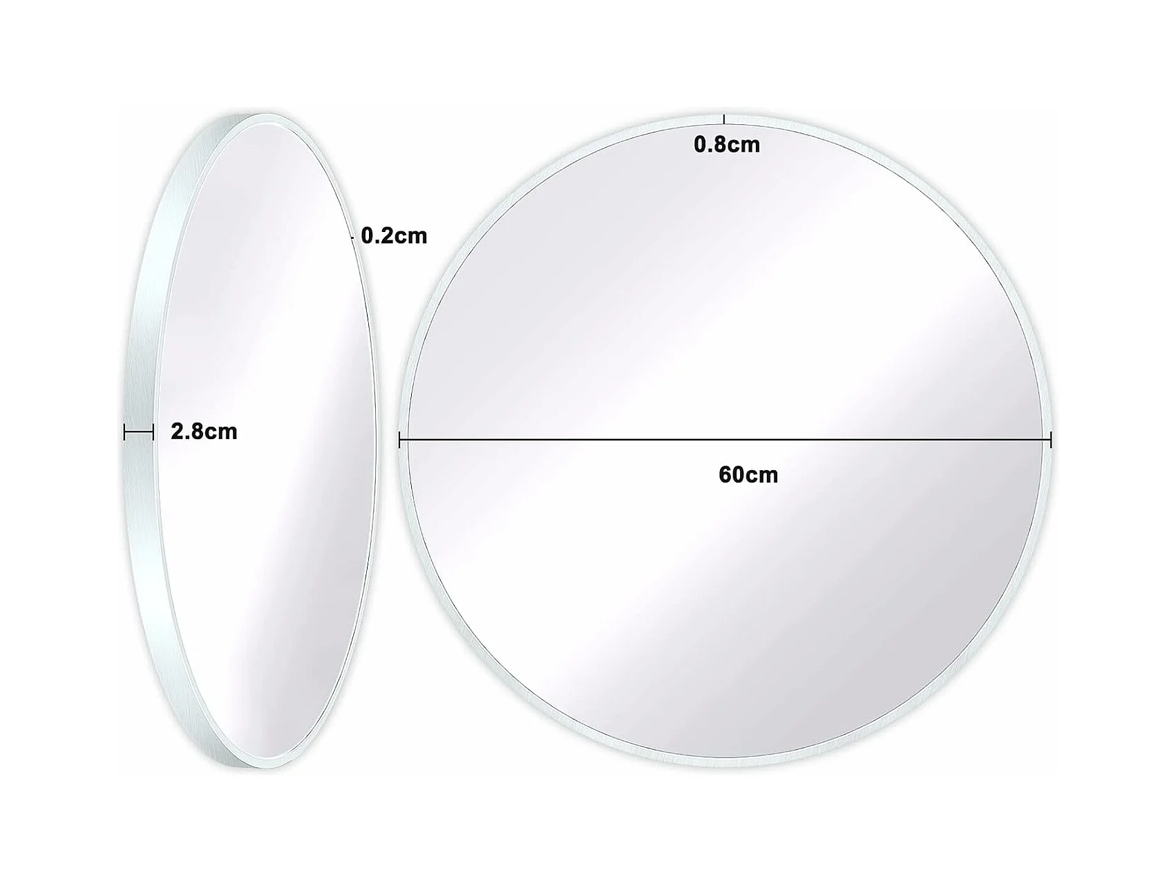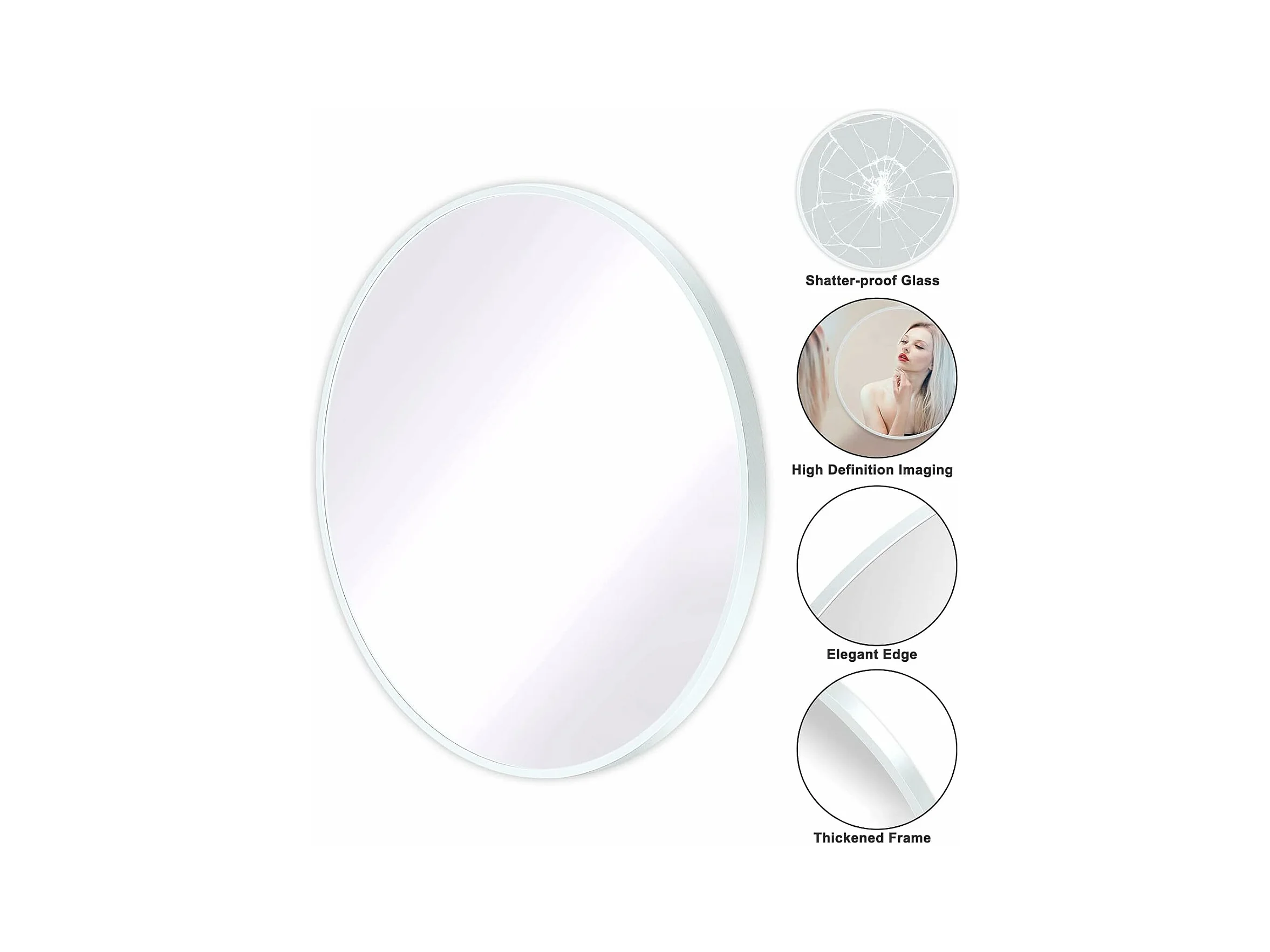 Miroir Rond Mural,60x60cm Miroir HD Moderne en Cadre pour décorer, Salle de Bain, Salon Chambre, Blanc