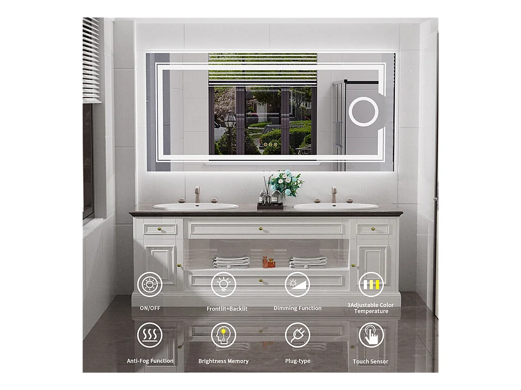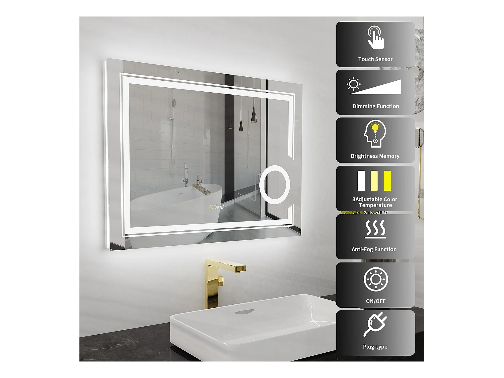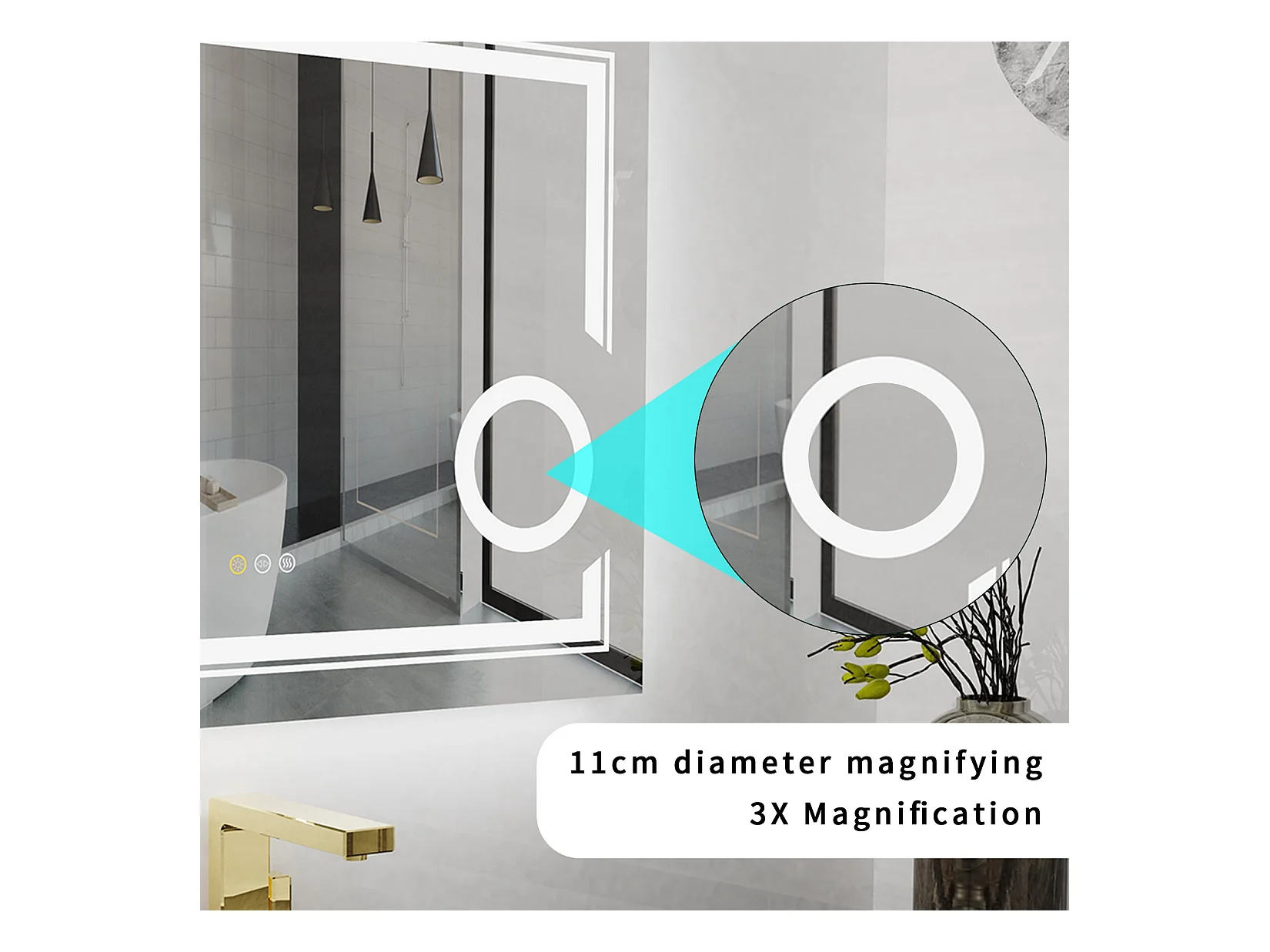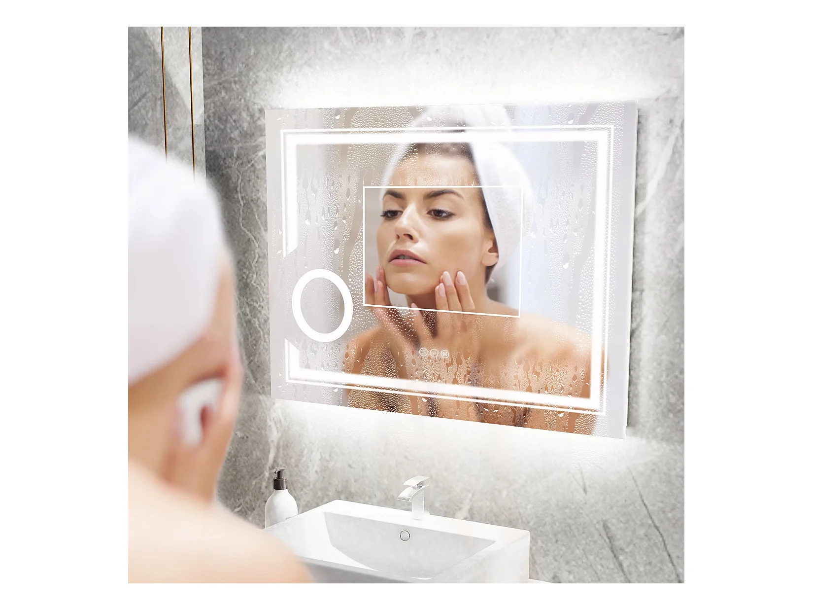 Miroir salle de bain led miroir mural lumineux anti bueé grossissant 90x70cm