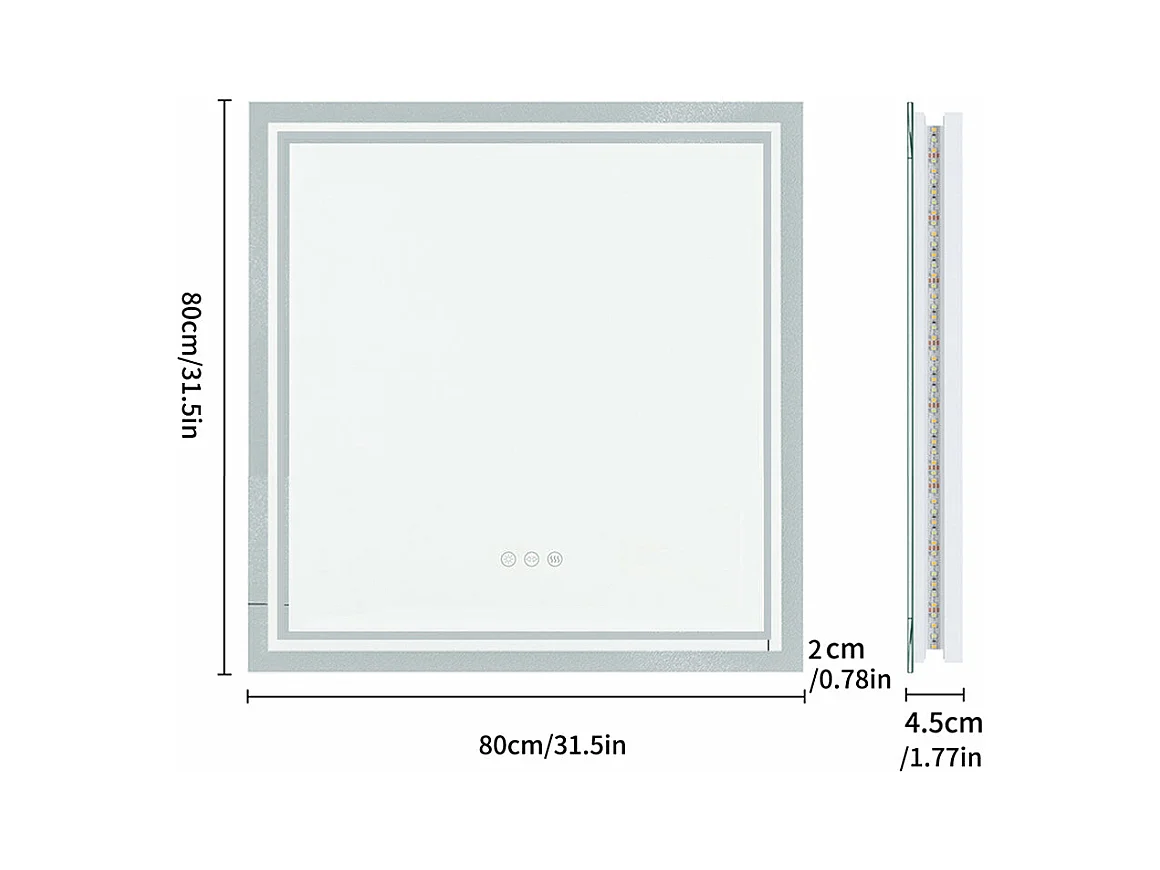Miroir salle de bain led 80x80cm miroir mural carré avec 3 couleurs réglables 80x80cm