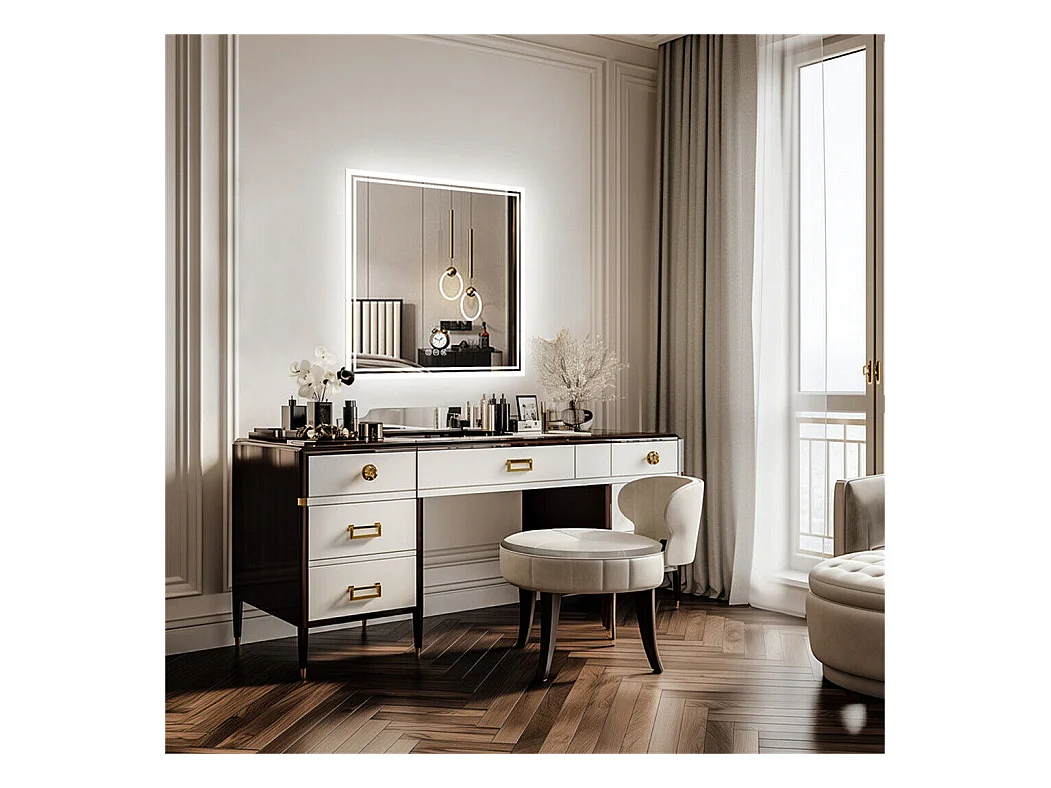 Miroir salle de bain 80x80m LED réglable+antibuée+Bluetooth 5.2 +Horloge+3 couleurs
