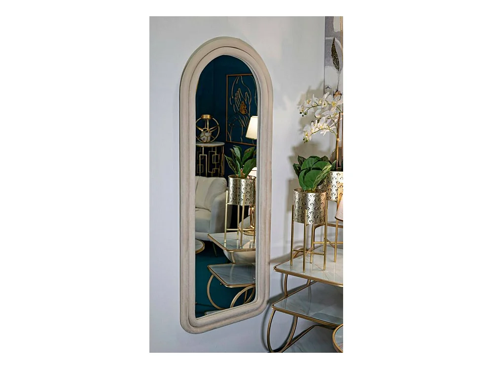 Miroir Marylin, Verre miroité, Objet d'ameublement mural, Décoration avec miroir, 60x4 h160 cm, Crème