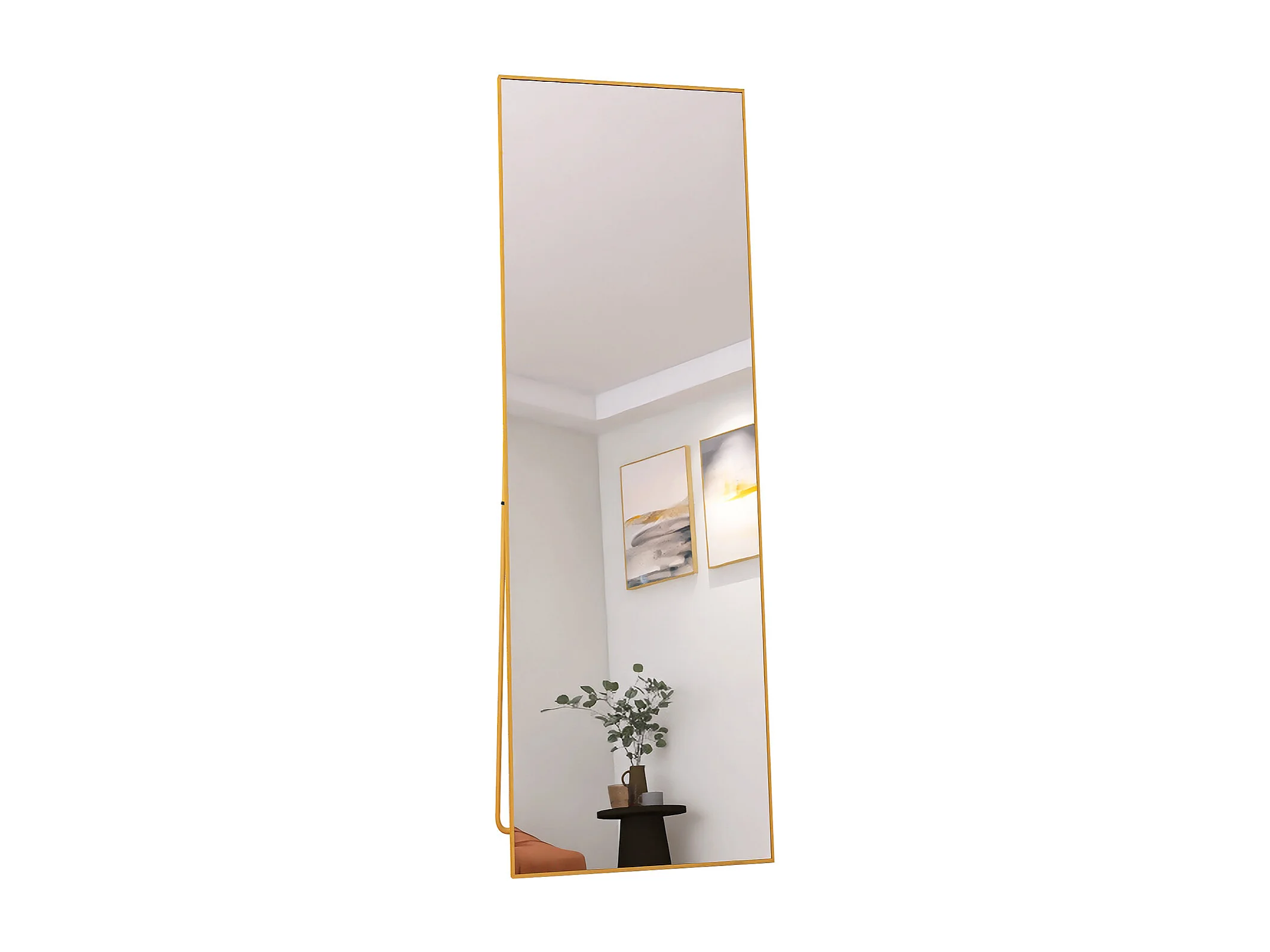Miroir sur Pied 150x40 cm, Cadre Aluminium Doré, Miroir Mural Moderne à Poser ou Suspendre