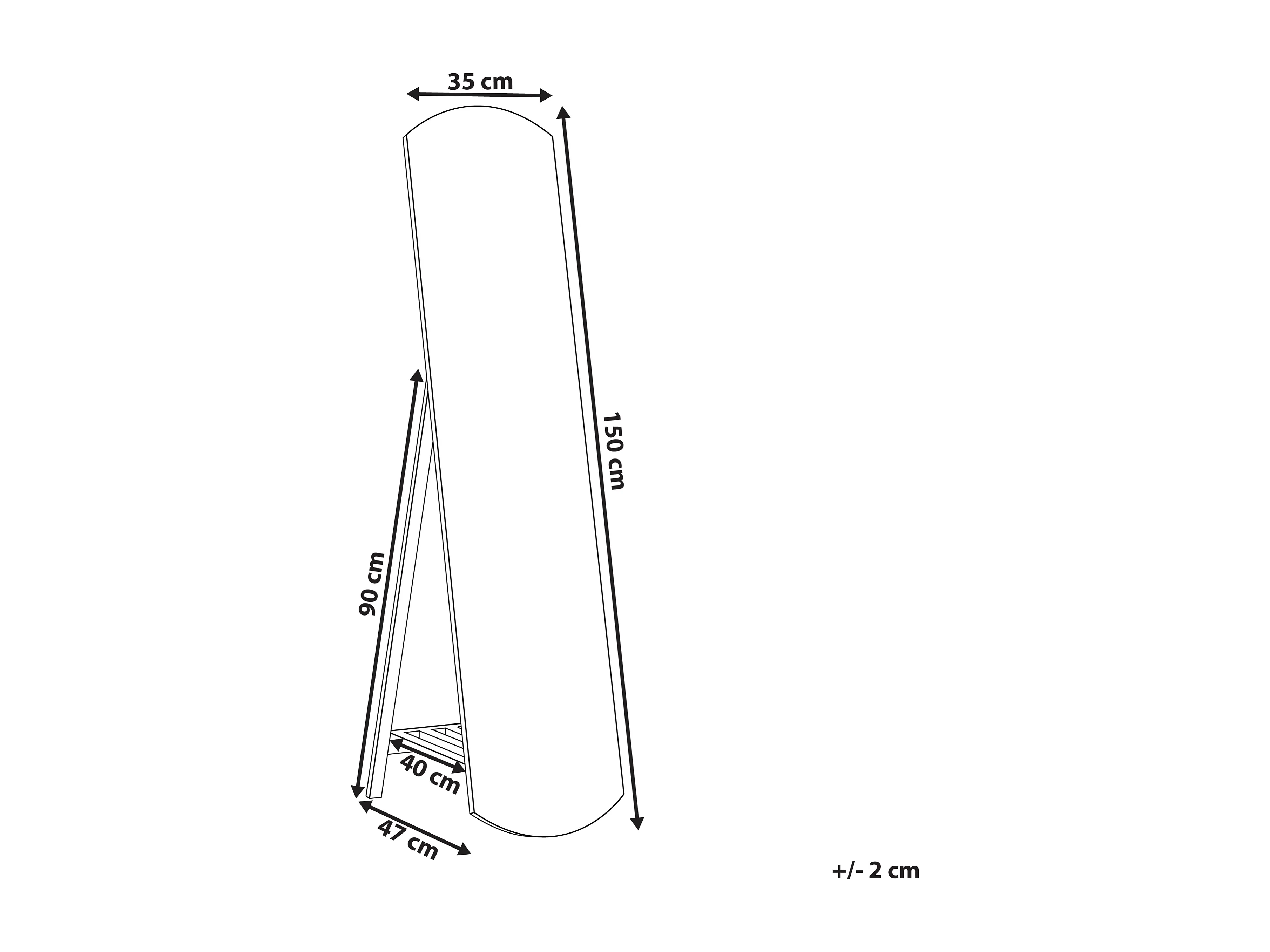 Miroir sur pied avec étagère CHERBOURG 150 cm Bois de pin Marron clair