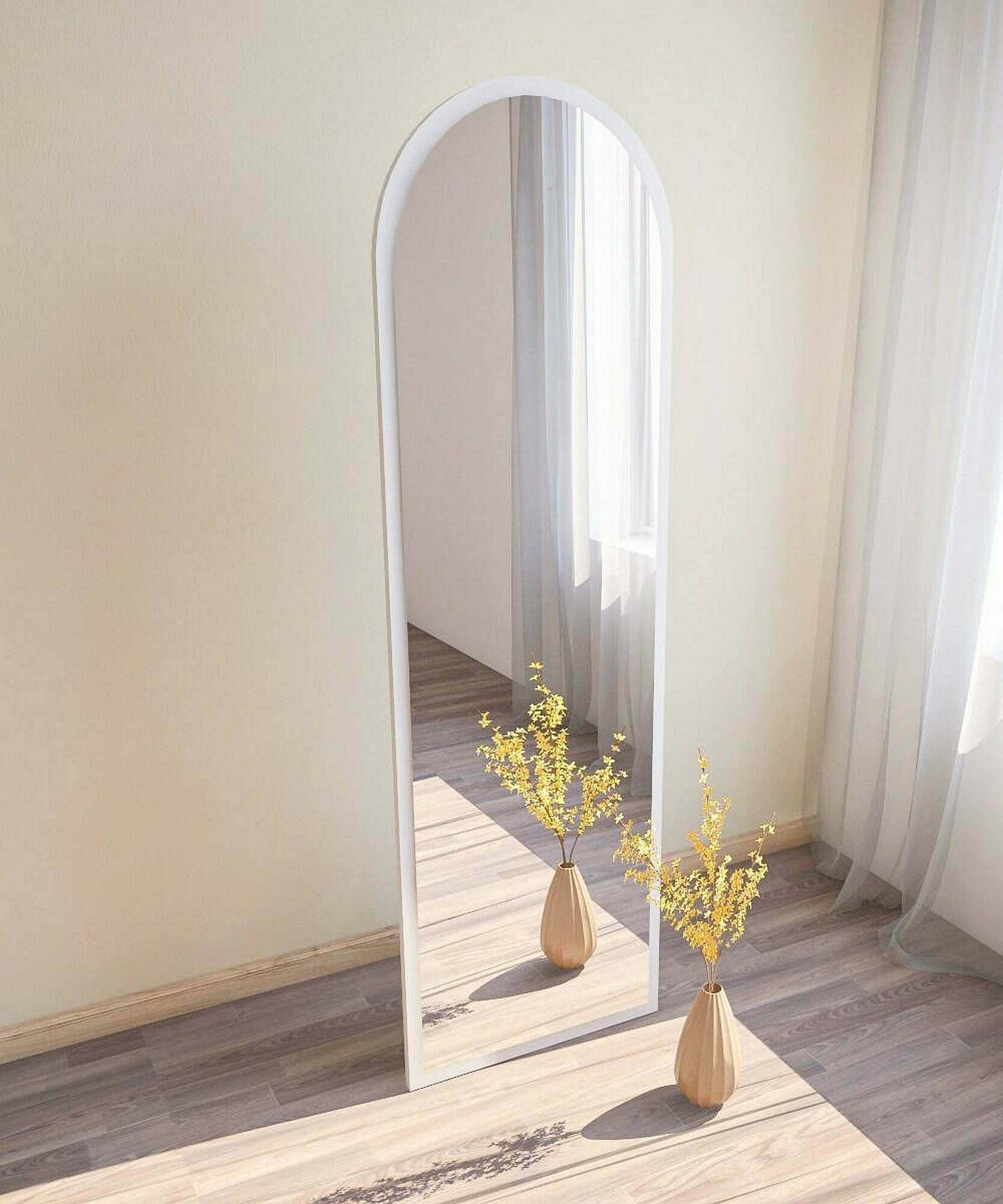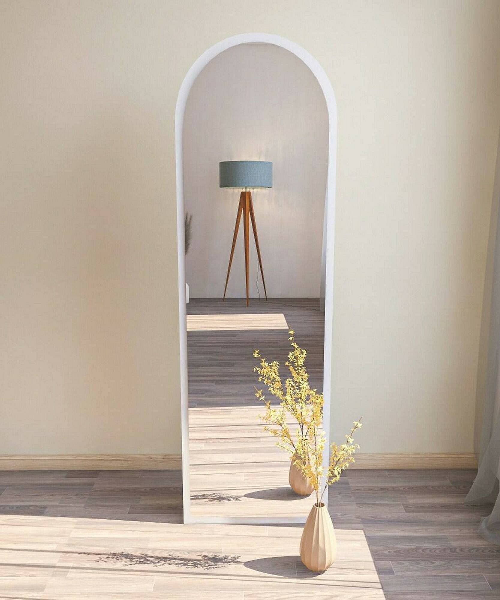 Miroir Zaniah, Verre miroité, Objet d'ameublement mural, Décoration avec miroir, 50x2h160 cm, Blanc