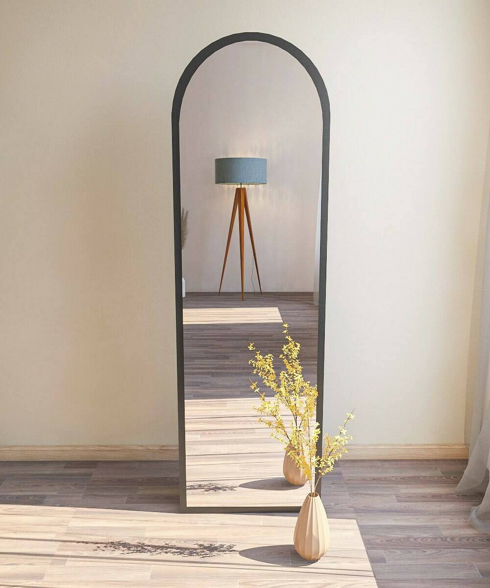 Miroir Zaniah, Verre miroité, Objet d'ameublement mural, Décoration avec miroir, 50x2h160 cm, Noir