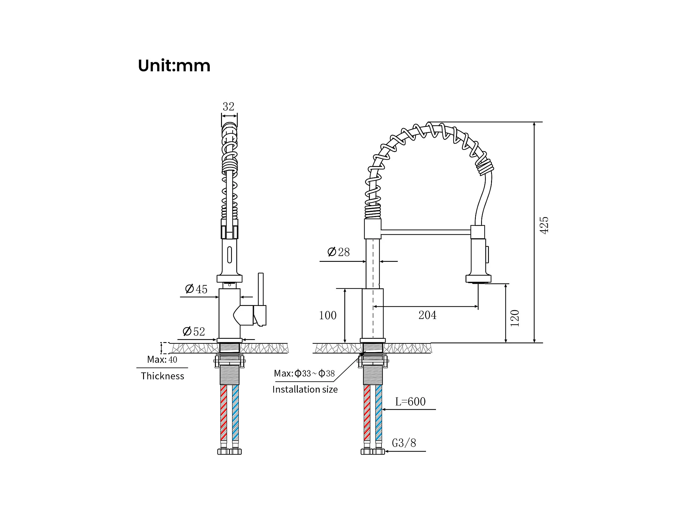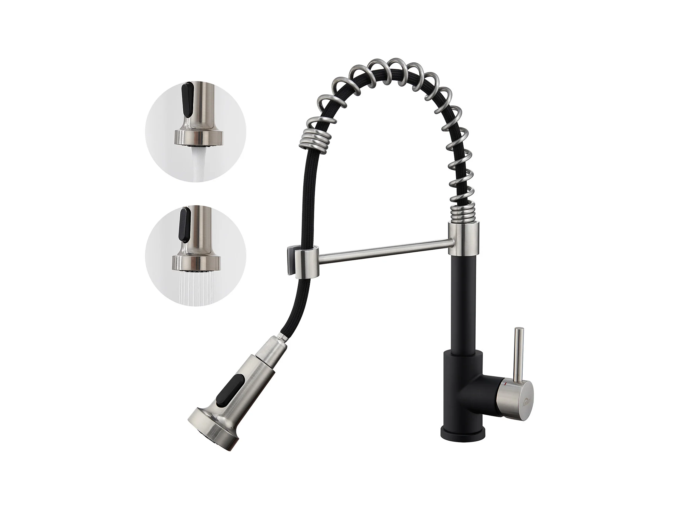 2PCS AURALUM MAX Mitigeur cuisine avec douchette Robinet Cuisine à Ressort Robinetterie cuisine Rotation 360°,2 Jets,Eau Froide/Chaude,Noir