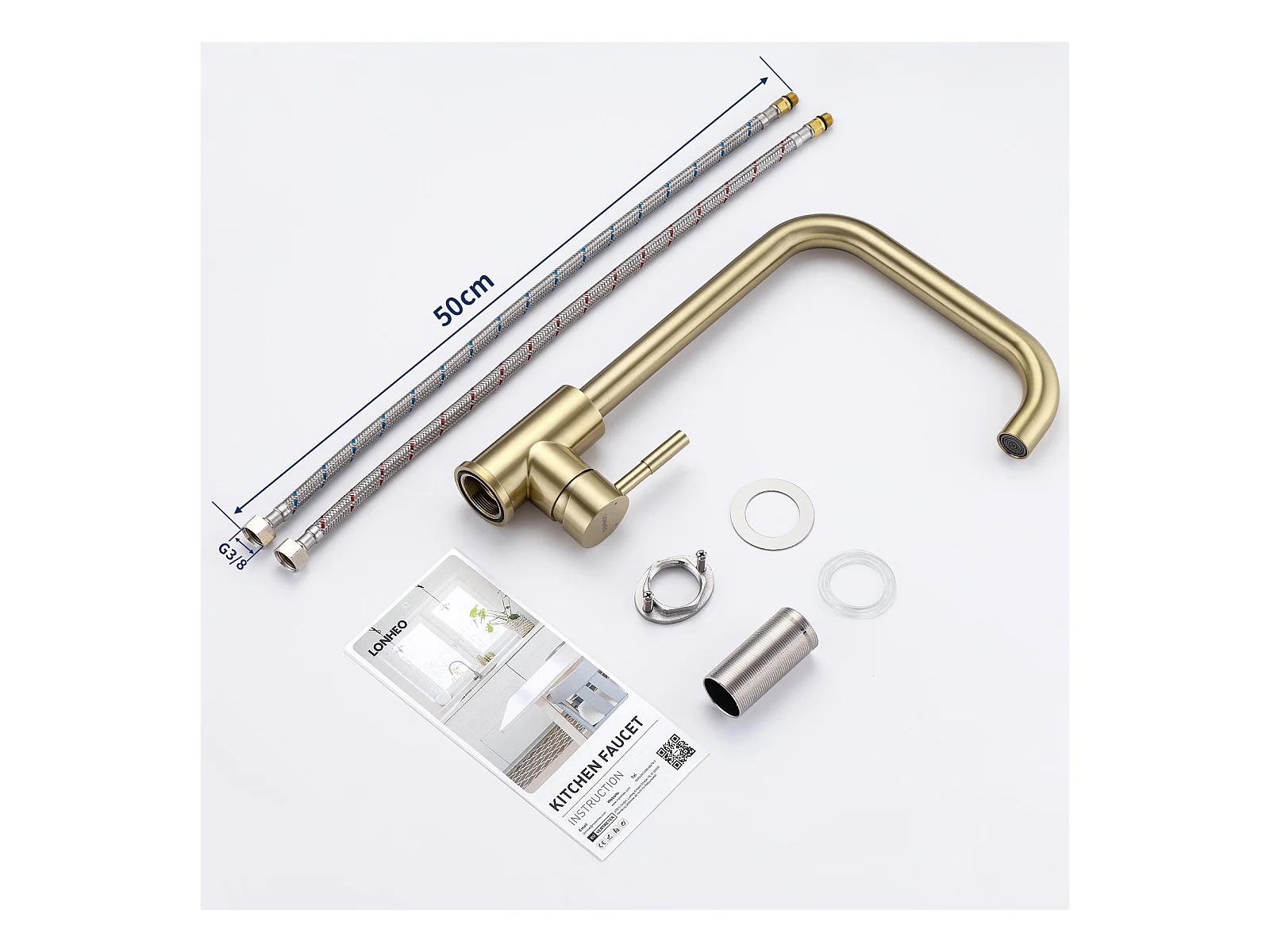 Lonheo Max Robinet de Cuisine U-Forme Rotatif à 360°Mitigeur Évier à Eau Froide et Chaude en Acier Inoxydable avec Barboteur démotable, Doré,EU Modèle