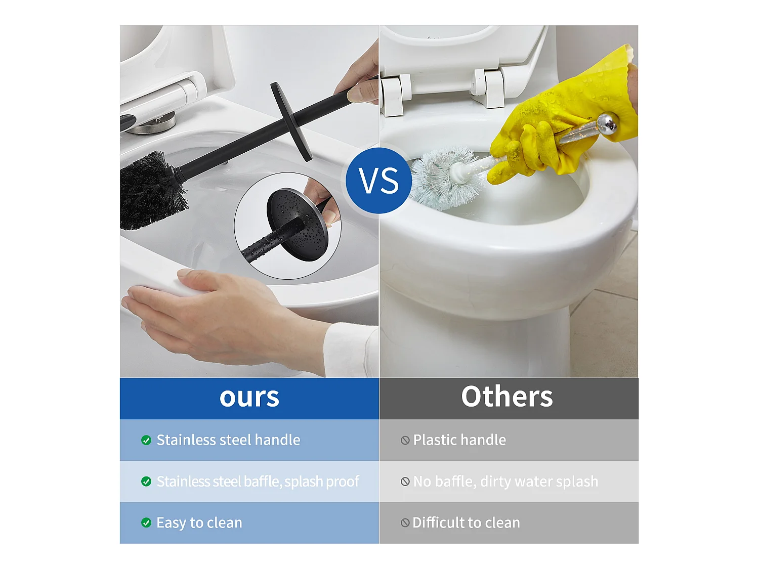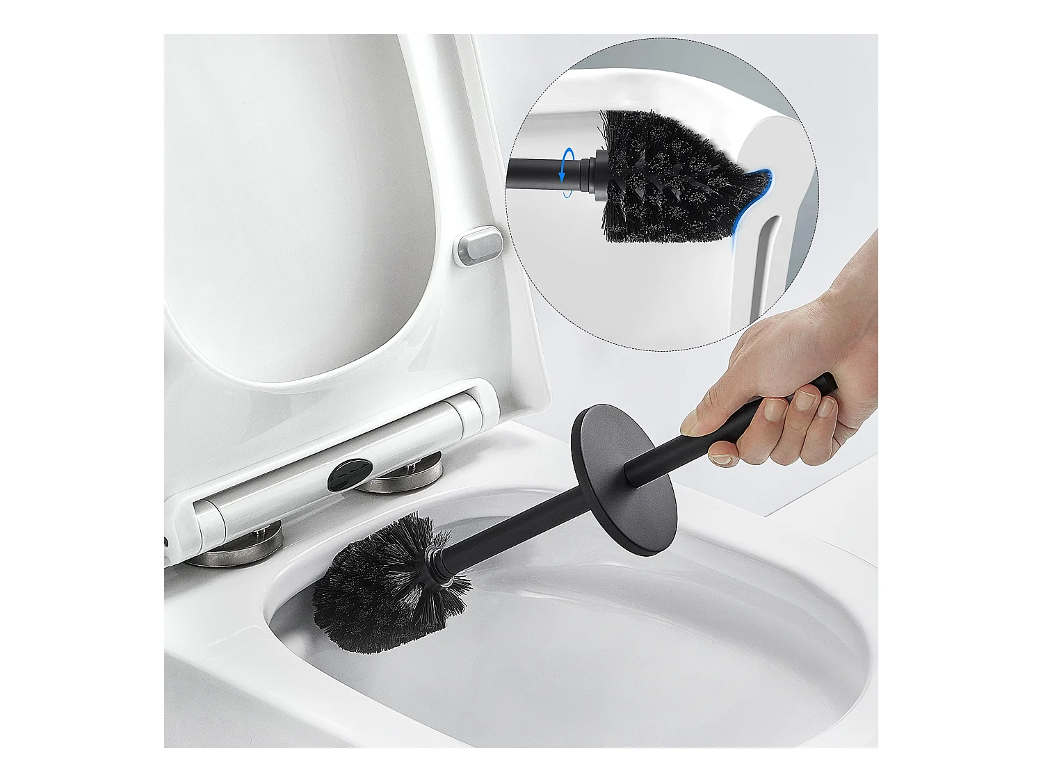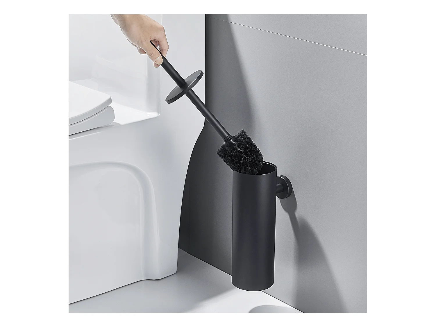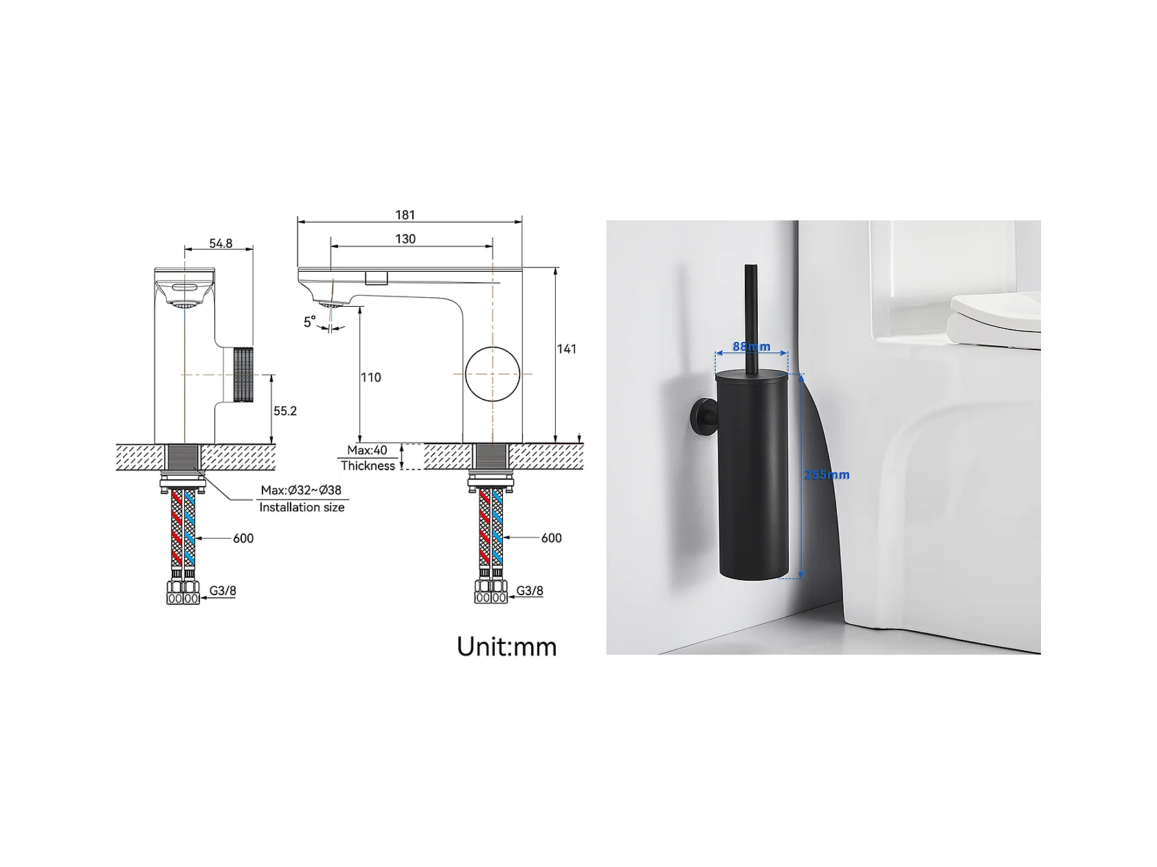 Mitigeur Lavabo Capteur Infrarouge Intelligent Automatique,Noir Laiton Eau+Brosse Toilettes WC Suspendu avec Support de Brosse, Acier INOX,Noir