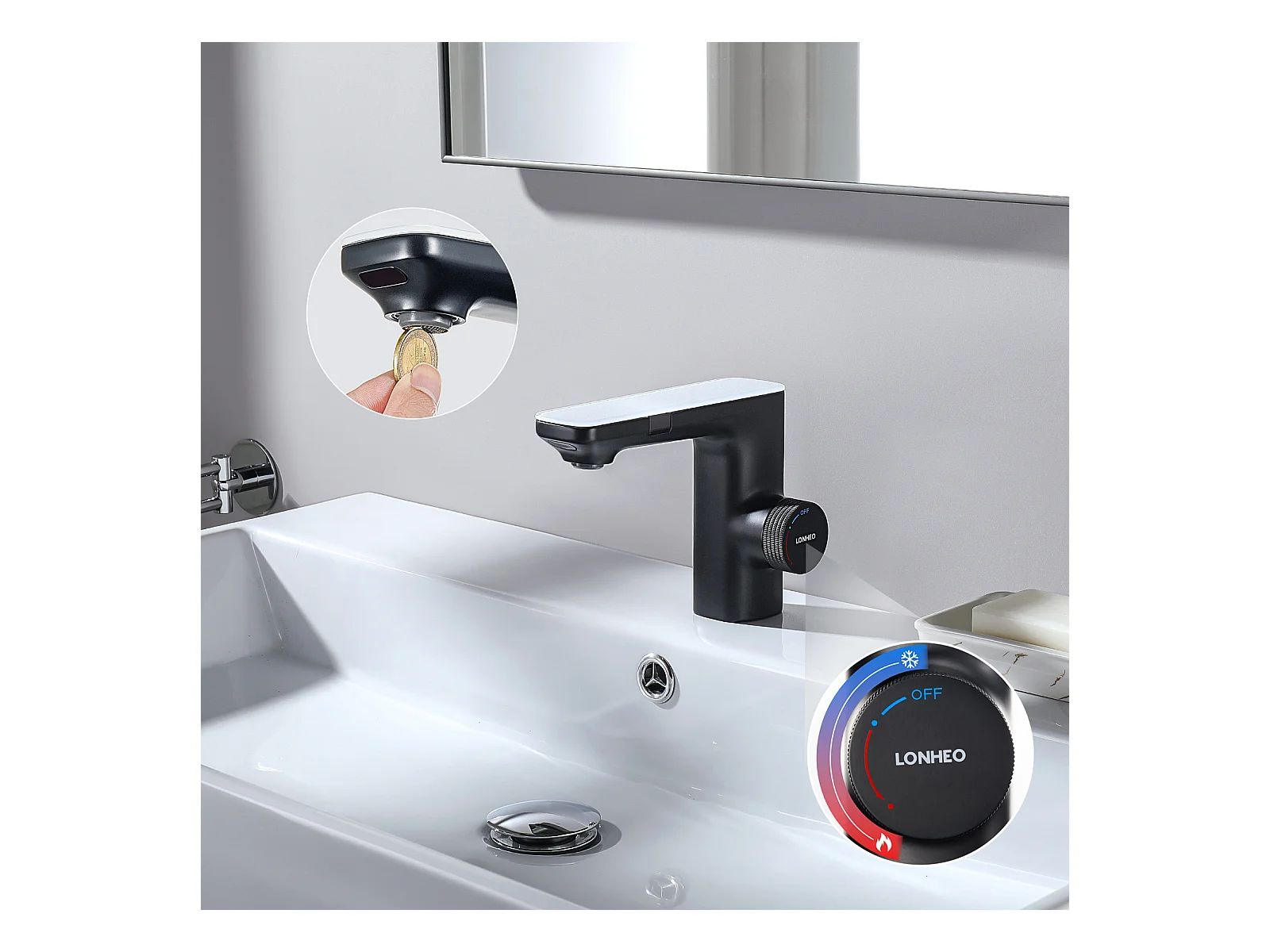 2pcs Mitigeur Lavabo Capteur Infrarouge Intelligent Automatique, Mitigeur Infrarouge Electronique Noir en Laiton