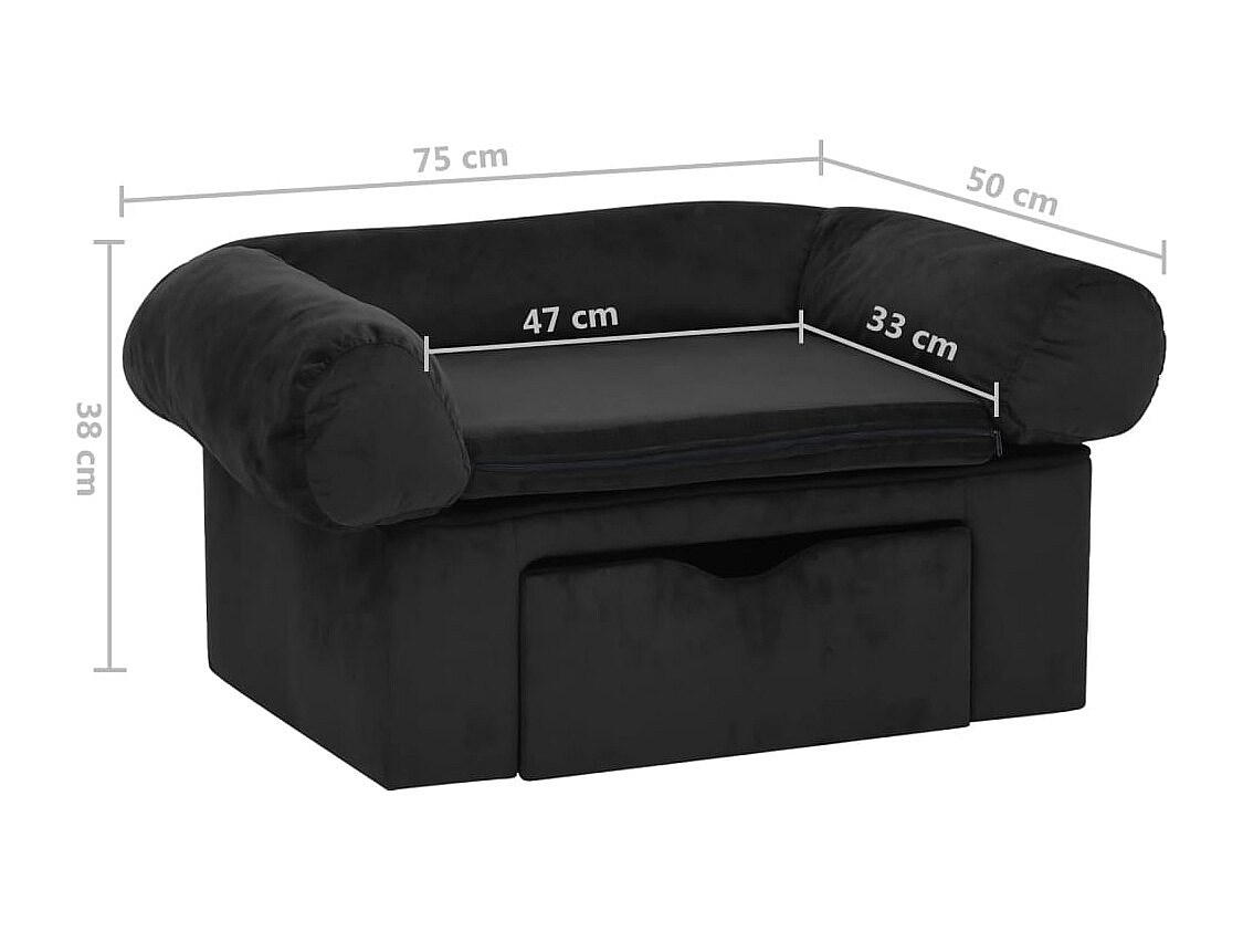Mjorn Canapé pour cen avec tiroir Noir 75x50x38 cm Peluche