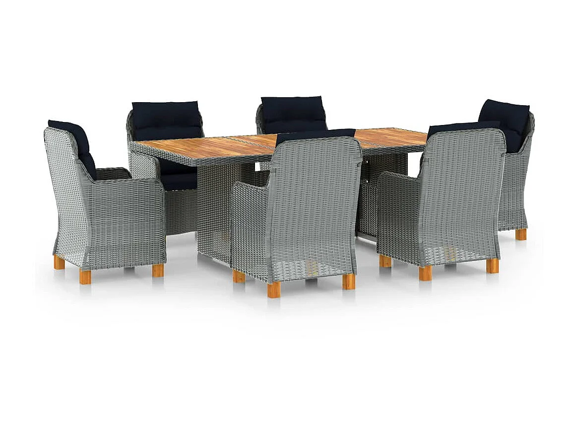 Mobilier à dîner 7 pcs avec coussins Résine tressée Gris clair 6