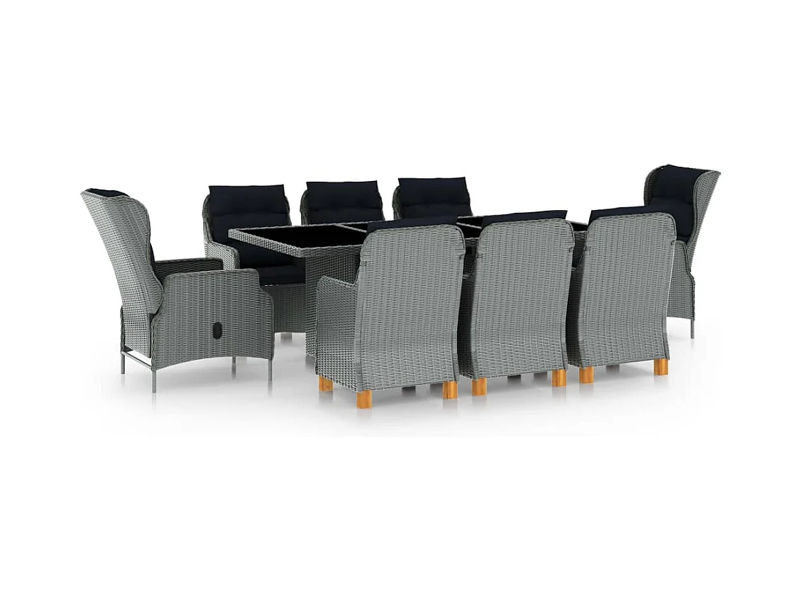 Ensemble à manger de jardin coussins 9pcs Résine tressée Gris