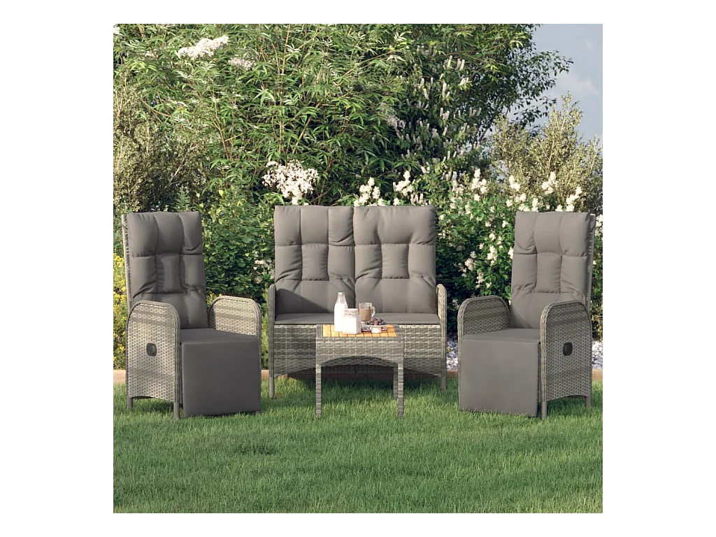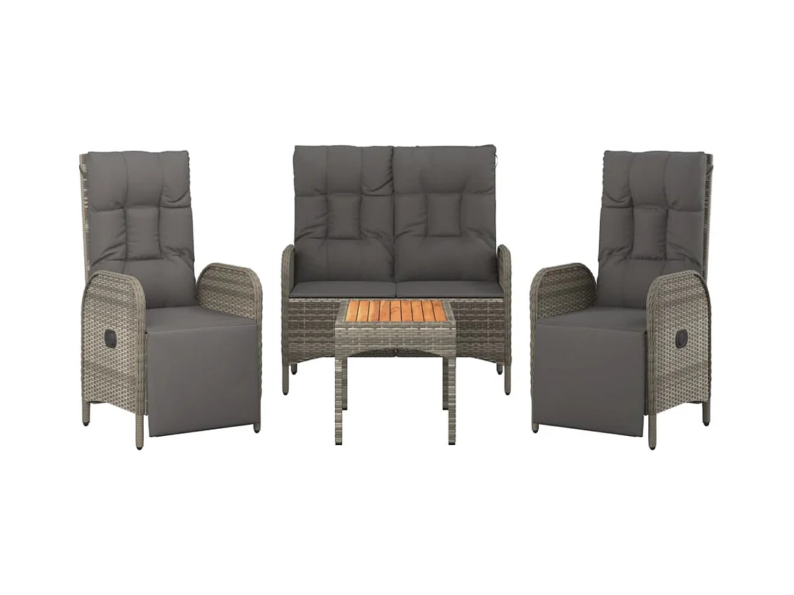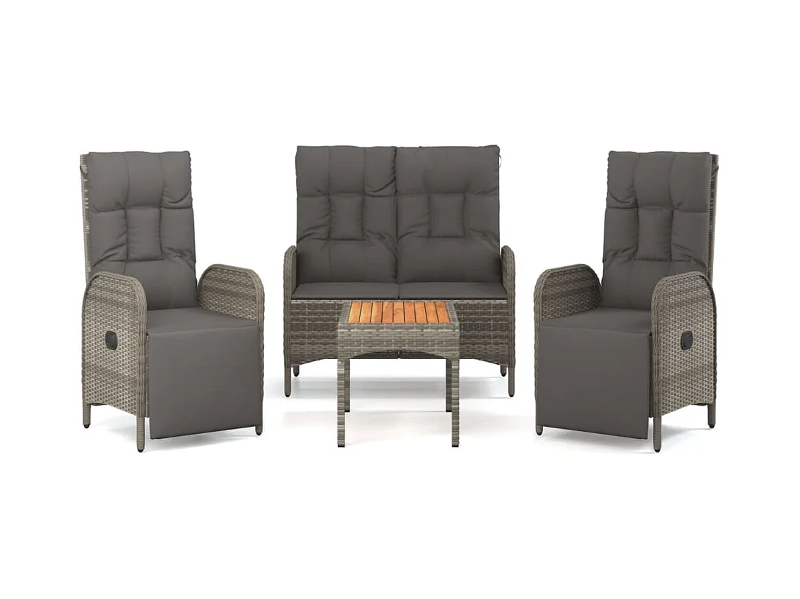 Mobilier à dîner de jardin 4pièces et coussins Gris Résine tressée