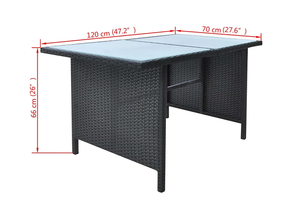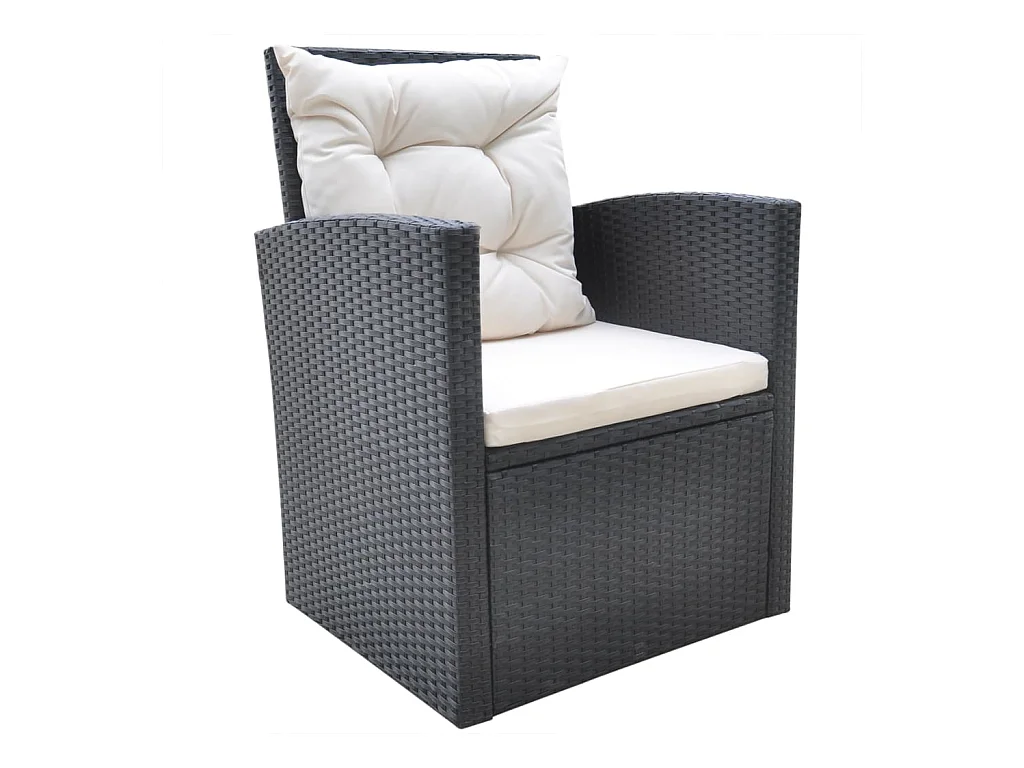 Ensemble à manger d'extérieur 6pcs coussins résine tressée noir
