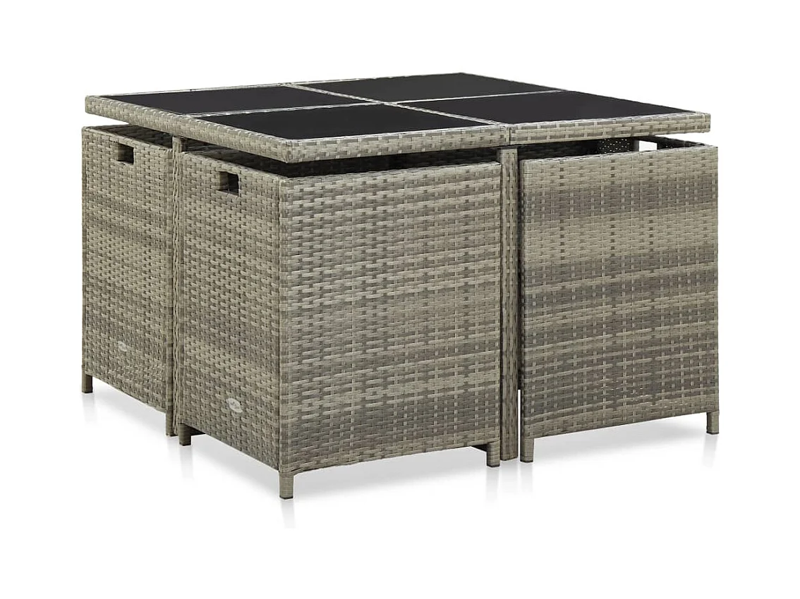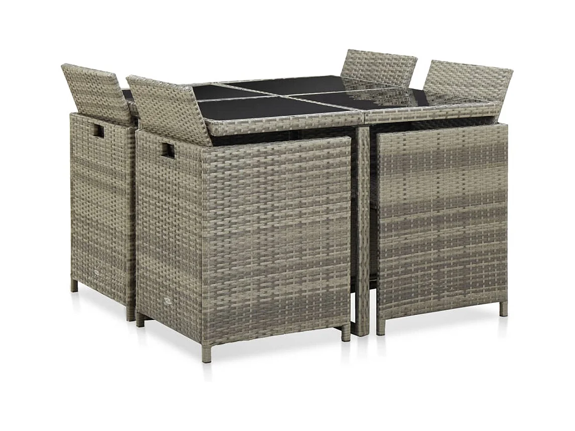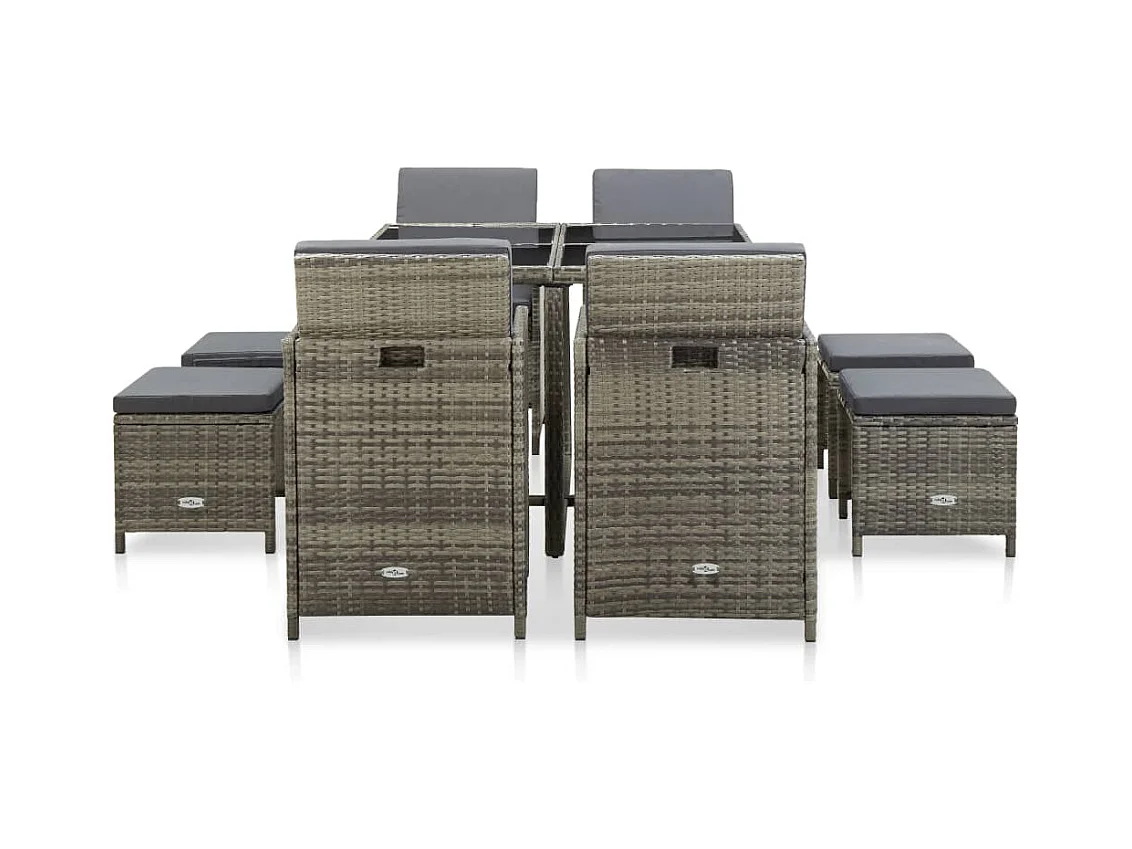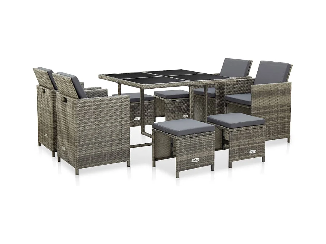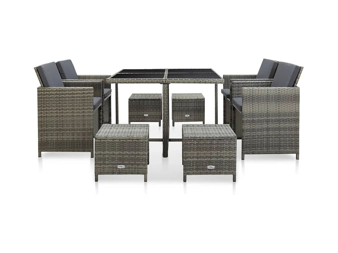 Zele Ensemble à manger de jardin 9 pcs coussins gris résine tressée