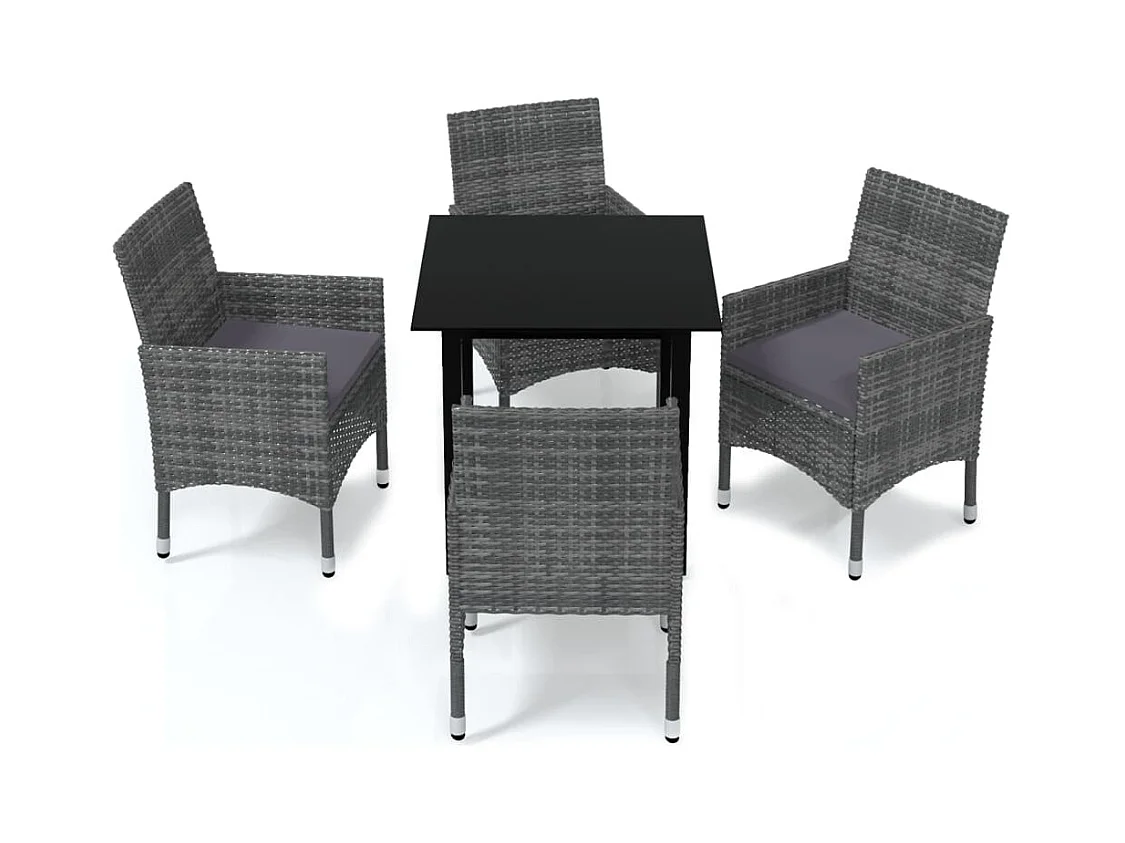 Mobilier à dîner de jardin et coussins 5 pièces Résine tressée Gris