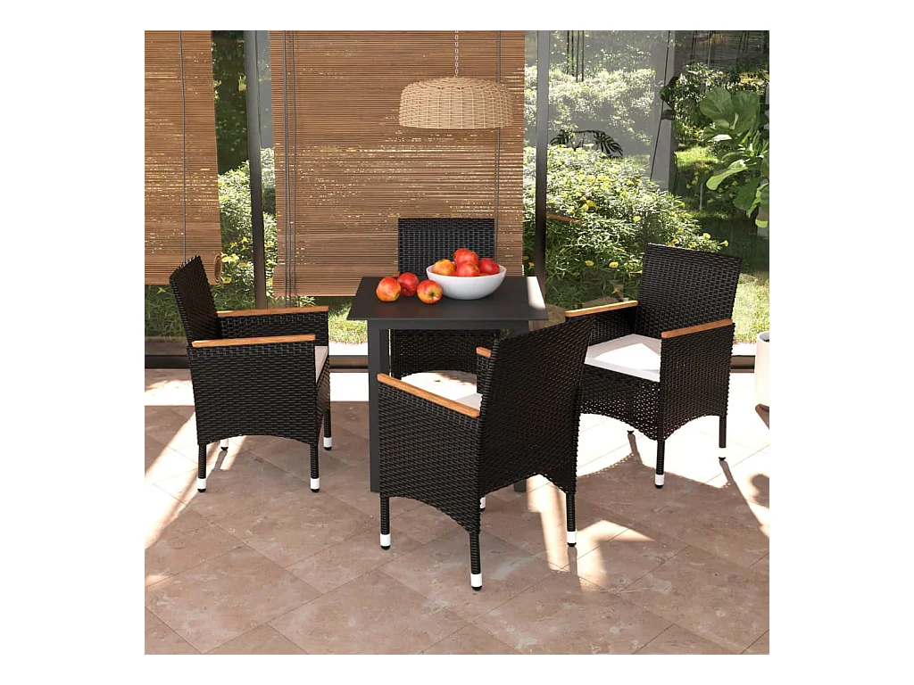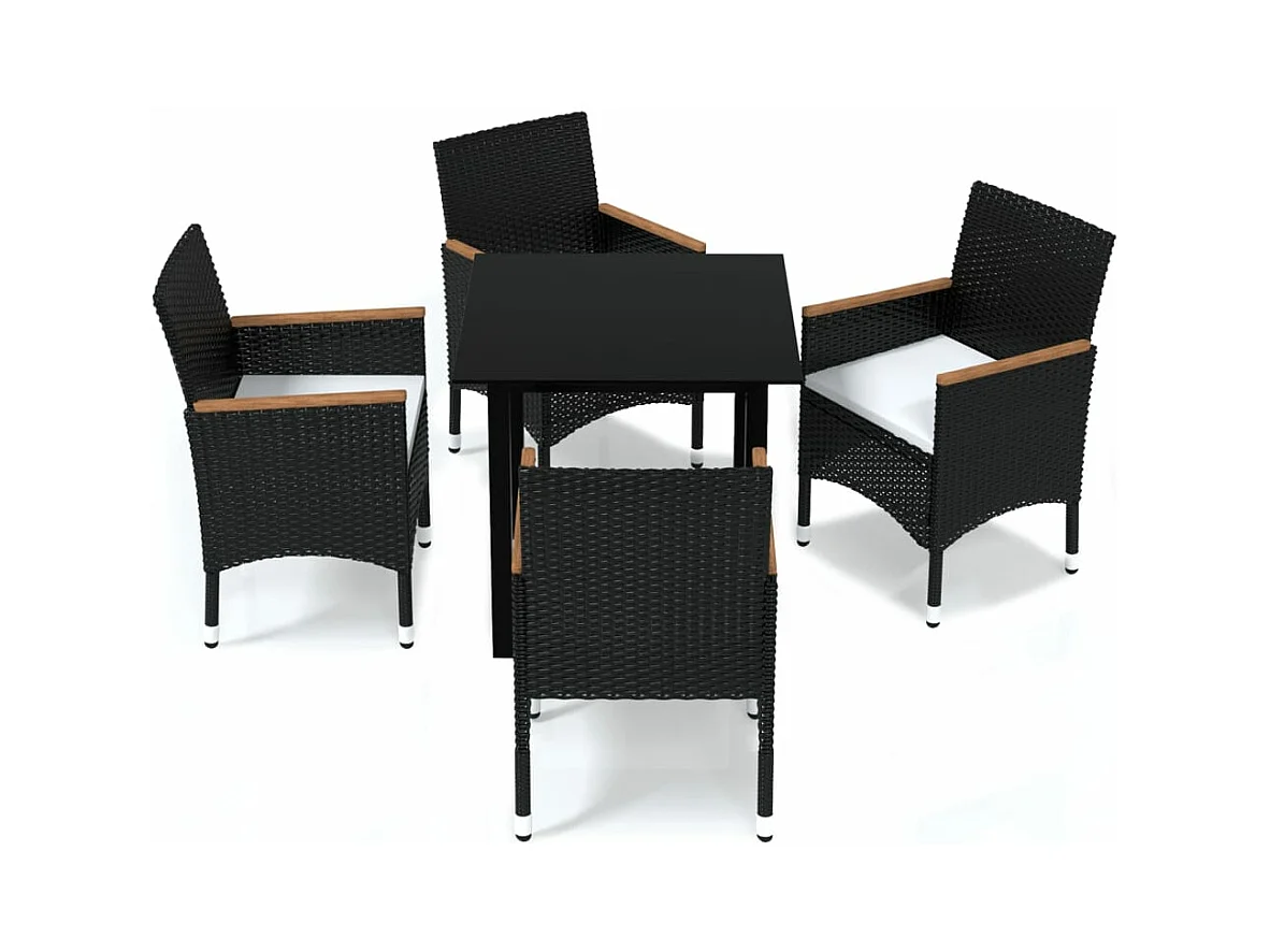 Zele Ensemble à manger de jardin coussins 5pcs Noir Résine tressée