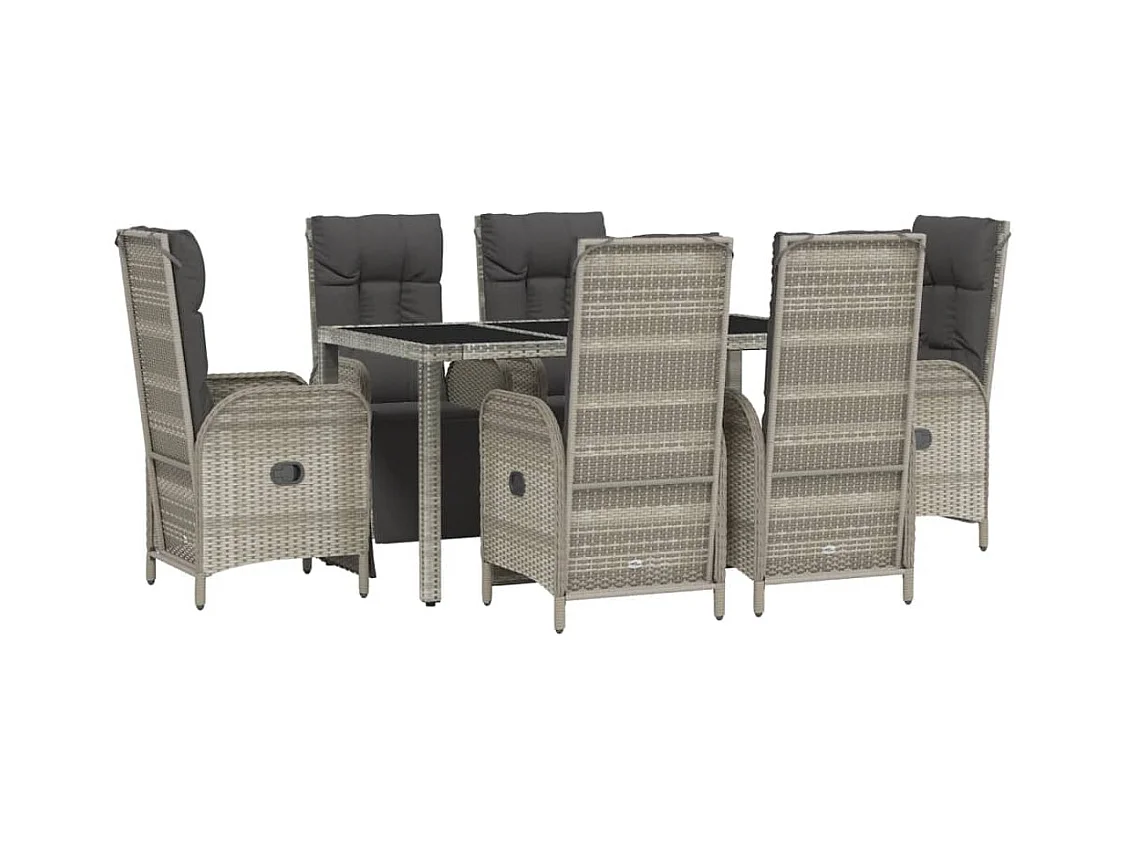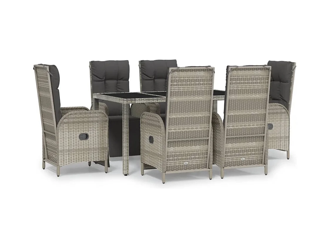 Ensemble à manger de jardin et coussins 7 pièces gris rotin verre