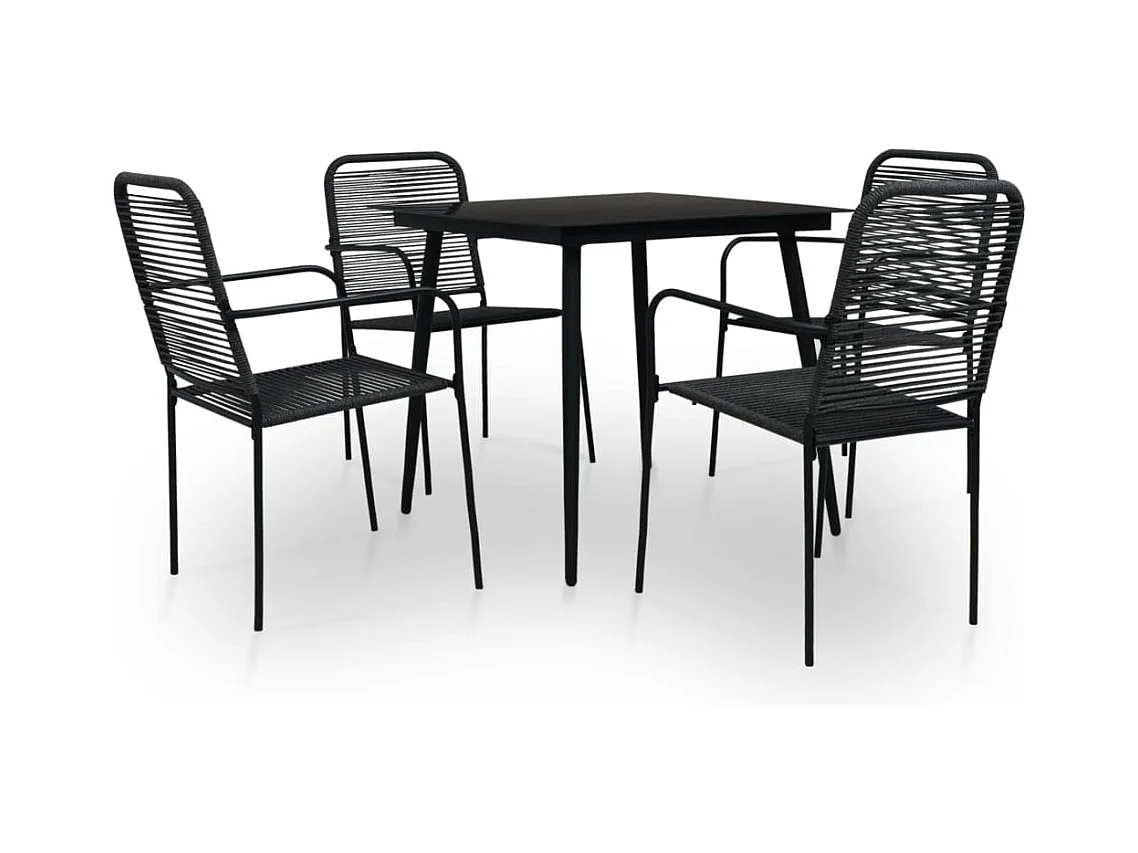 Ensemble à manger d'extérieur 5pcs Corde en coton et acier Noir