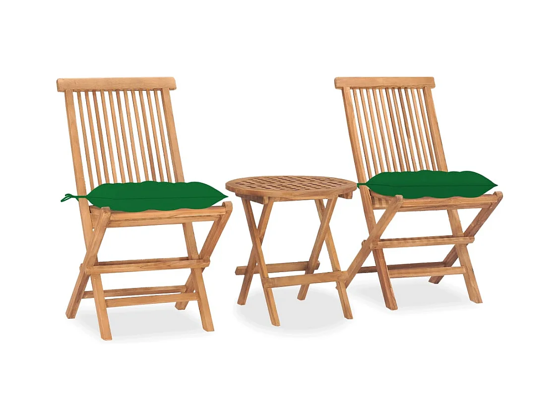 Tigard Ensemble à manger d'extérieur pliable avec coussin 3 pcs Teck
