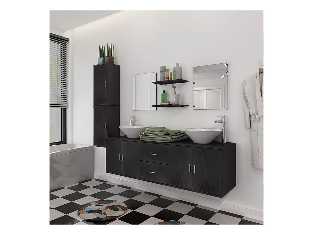 8 pièces de mobilier de salle de bain et lavabo Noir