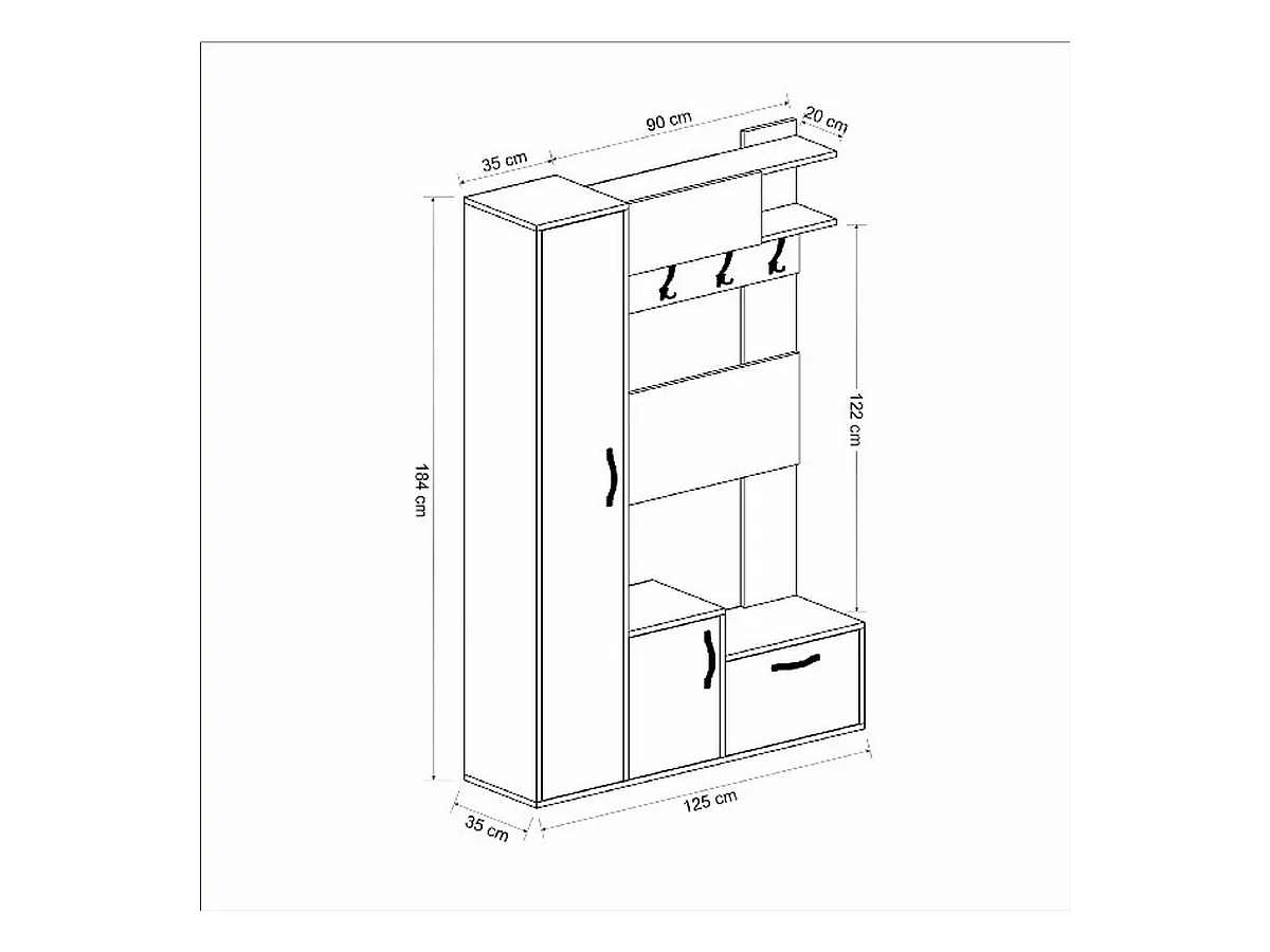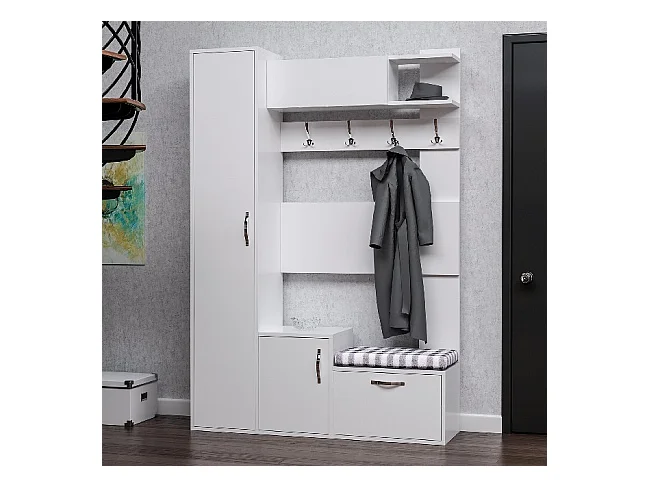 Meuble d'Entrée Seina, Blanc, 125x35x184 cm, EPIKASA
