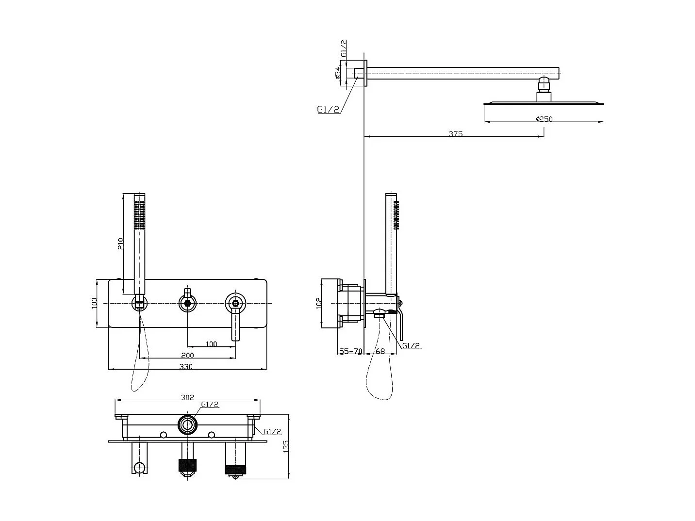 Molette colonne de douche encastrée mécanique cuivre brossé - Essebagno