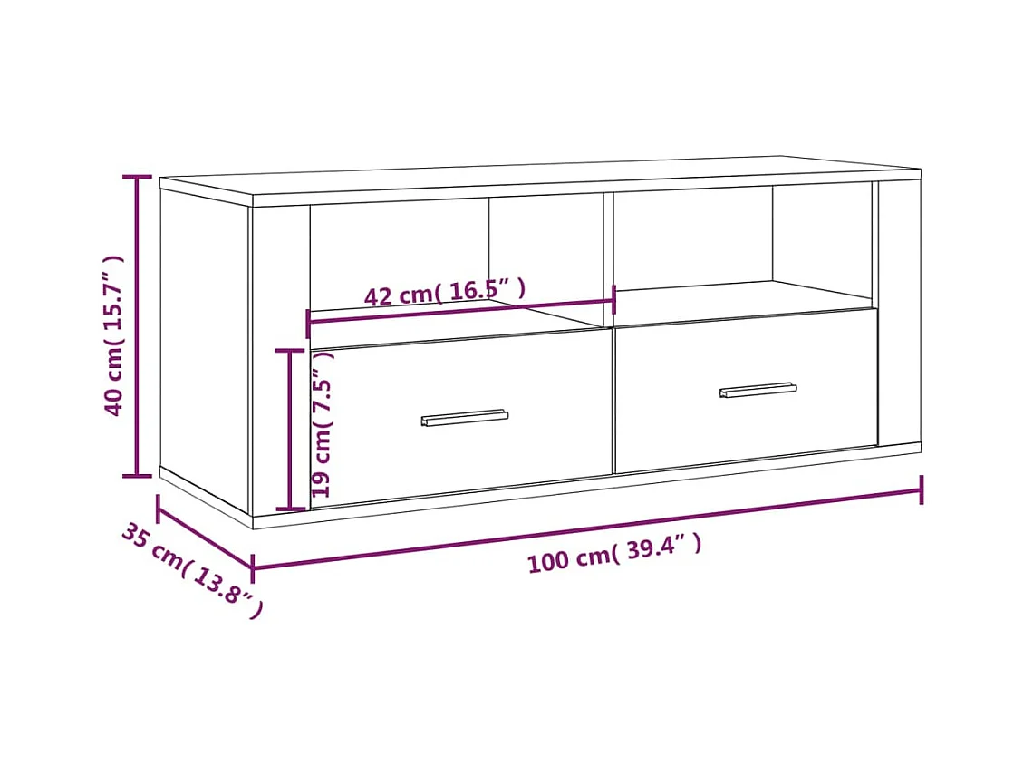 Fornir Meuble TV Sonoma gris 100x35x55 cm Bois d'ingénierie