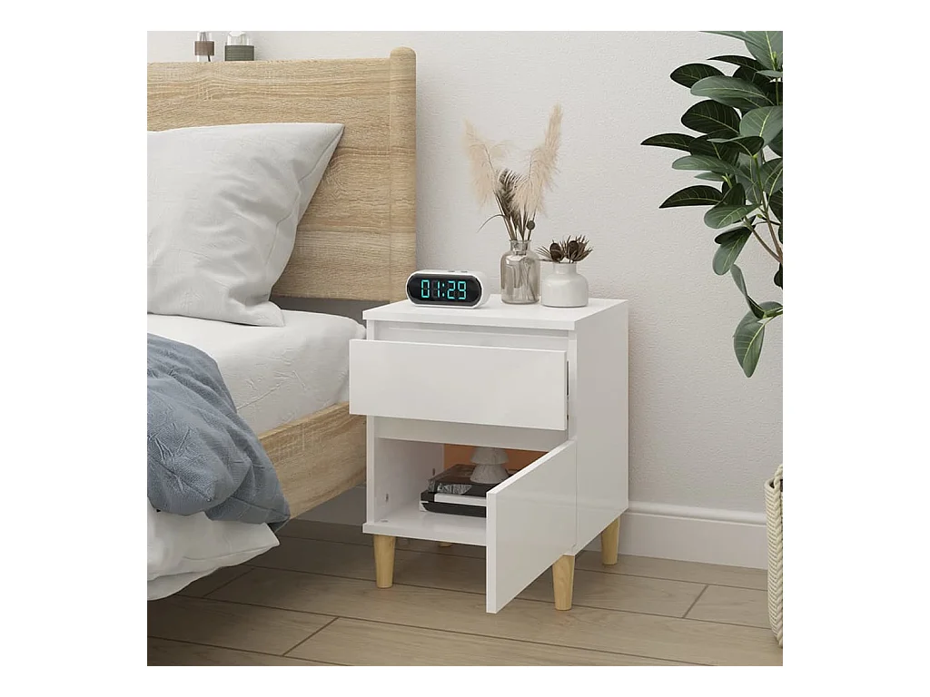 Zwolle Table de chevet avec pieds en bois massif Blanc 40x30x50 cm