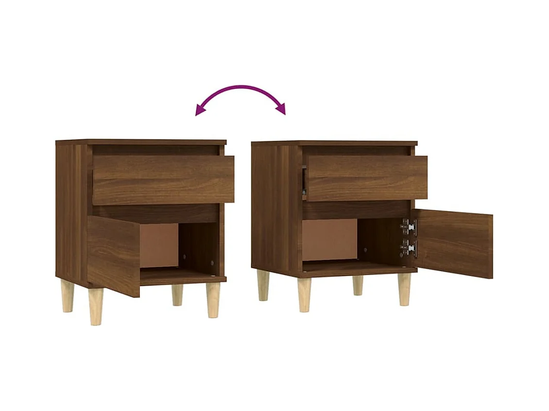 Zwolle Tables de chevet pieds en bois 2 pcs Chêne marron 40x30x50 cm