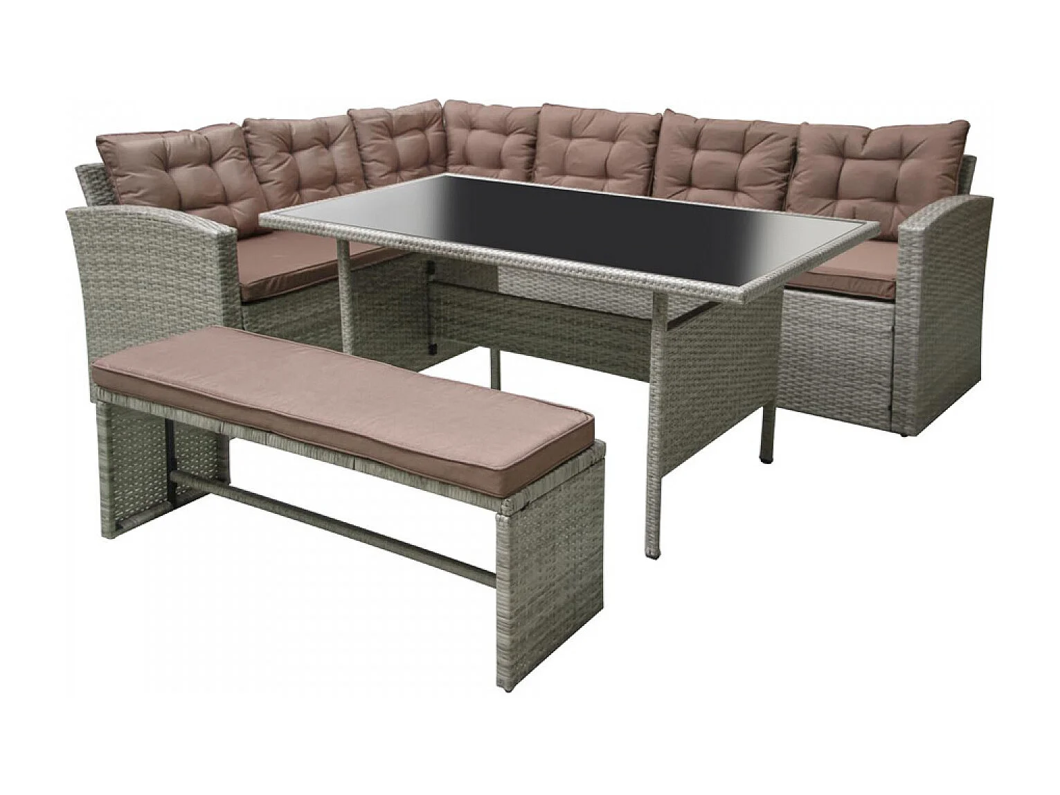 Salon de jardin d'angle 8 places en résine gris & marron MOOREA