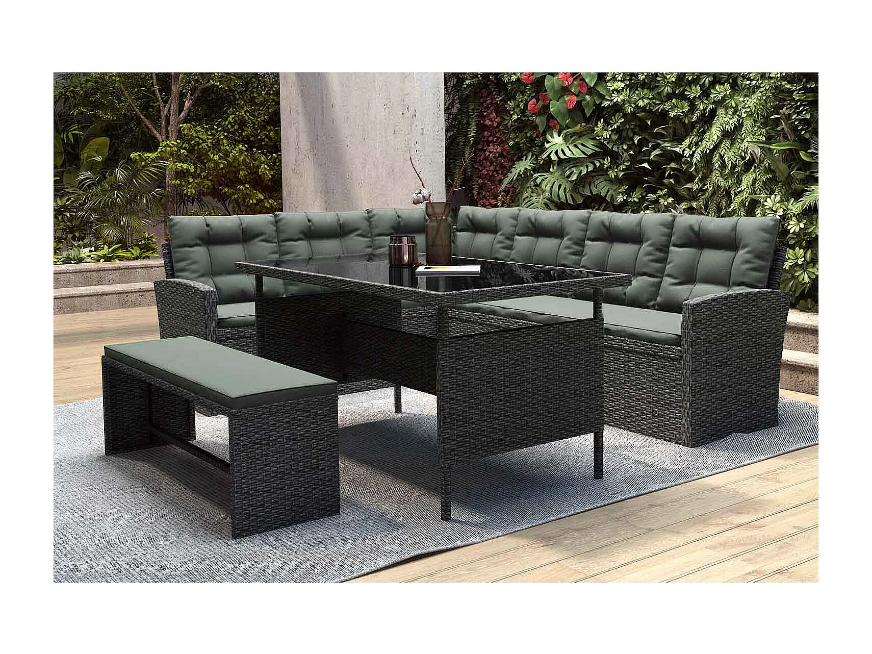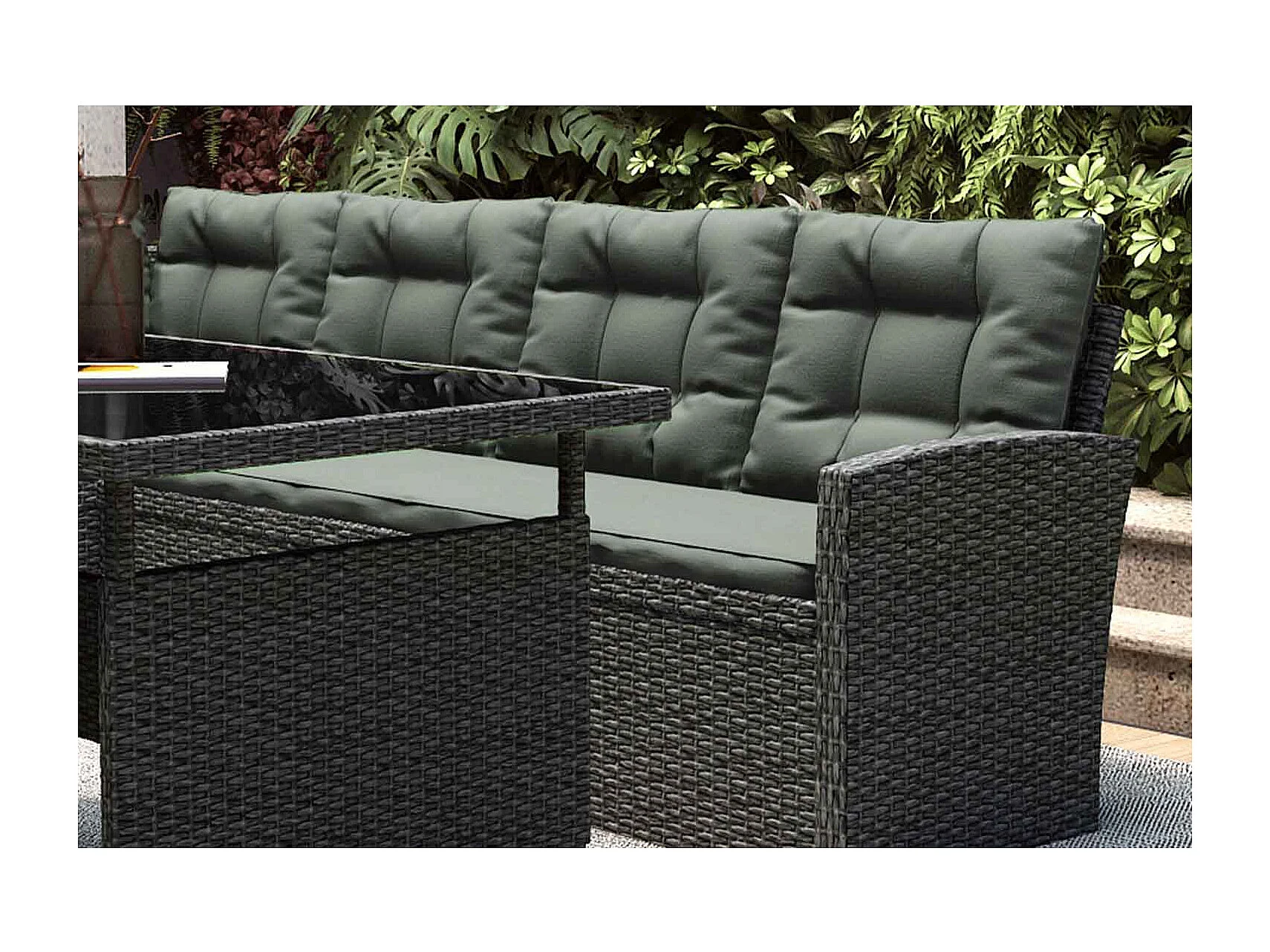 Salon de jardin 8 places en résine anthracite et coussins verts MOOREA