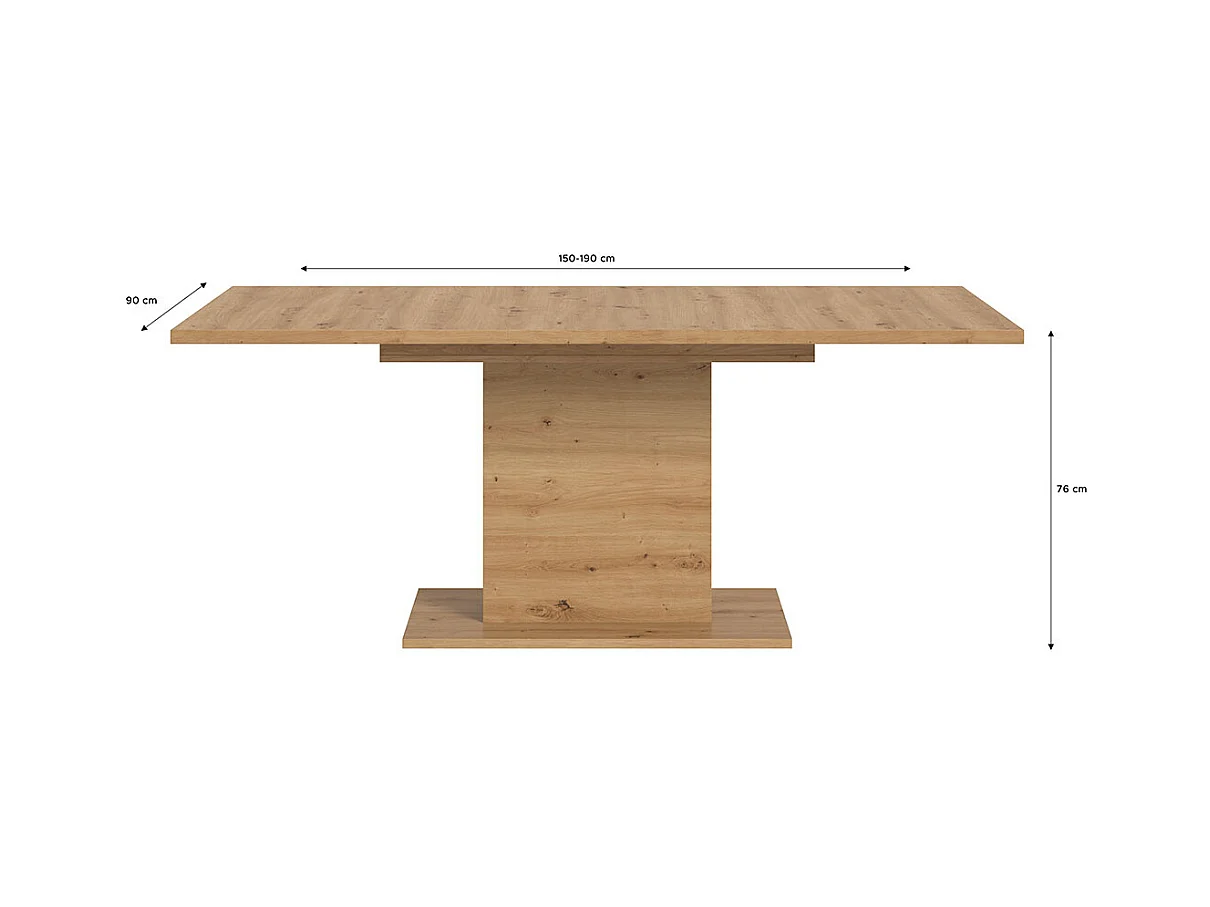 Motion table de salle à manger double colonne 90x150/190 cm avec 1 rallonge chêne décor.