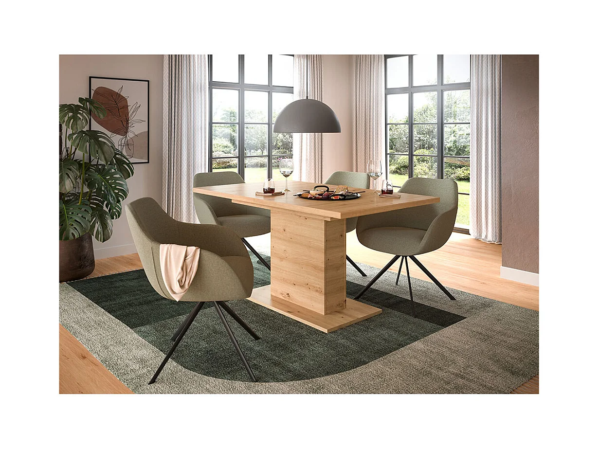 Motion table de salle à manger pied colonne 90x150/190 cm avec 1 rallonge chêne décor.