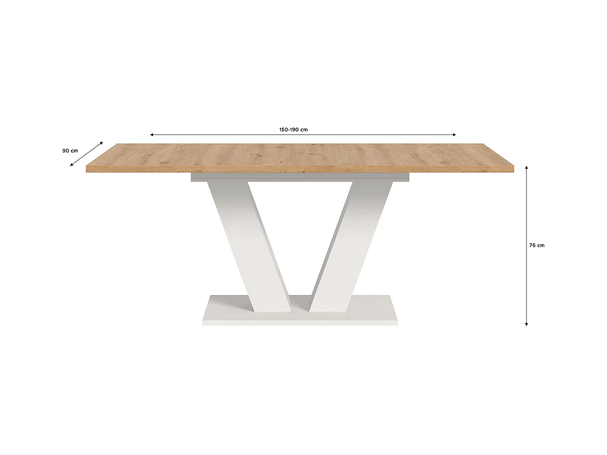 Motion table de salle à manger pieds V 90x150/190 cm avec 1 rallonge chêne décor, blanc.