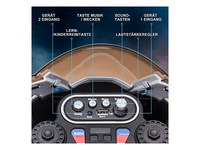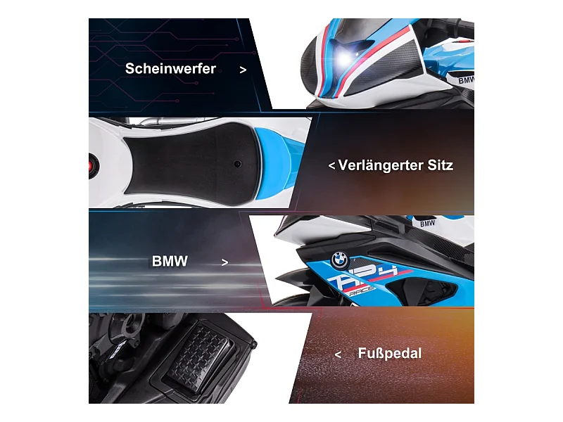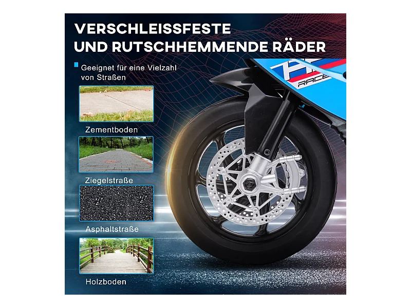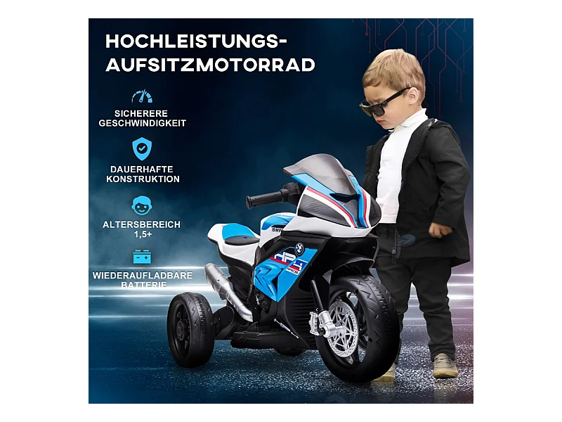Moto électrique pour enfants, avec phare, 3 modes musique, métal, bleu (82.5x42x54cm)