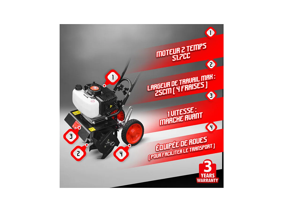 Motobineuse Thermique Elem Garden Technic - 51,7 cc - 25 cm - 4 Fraises