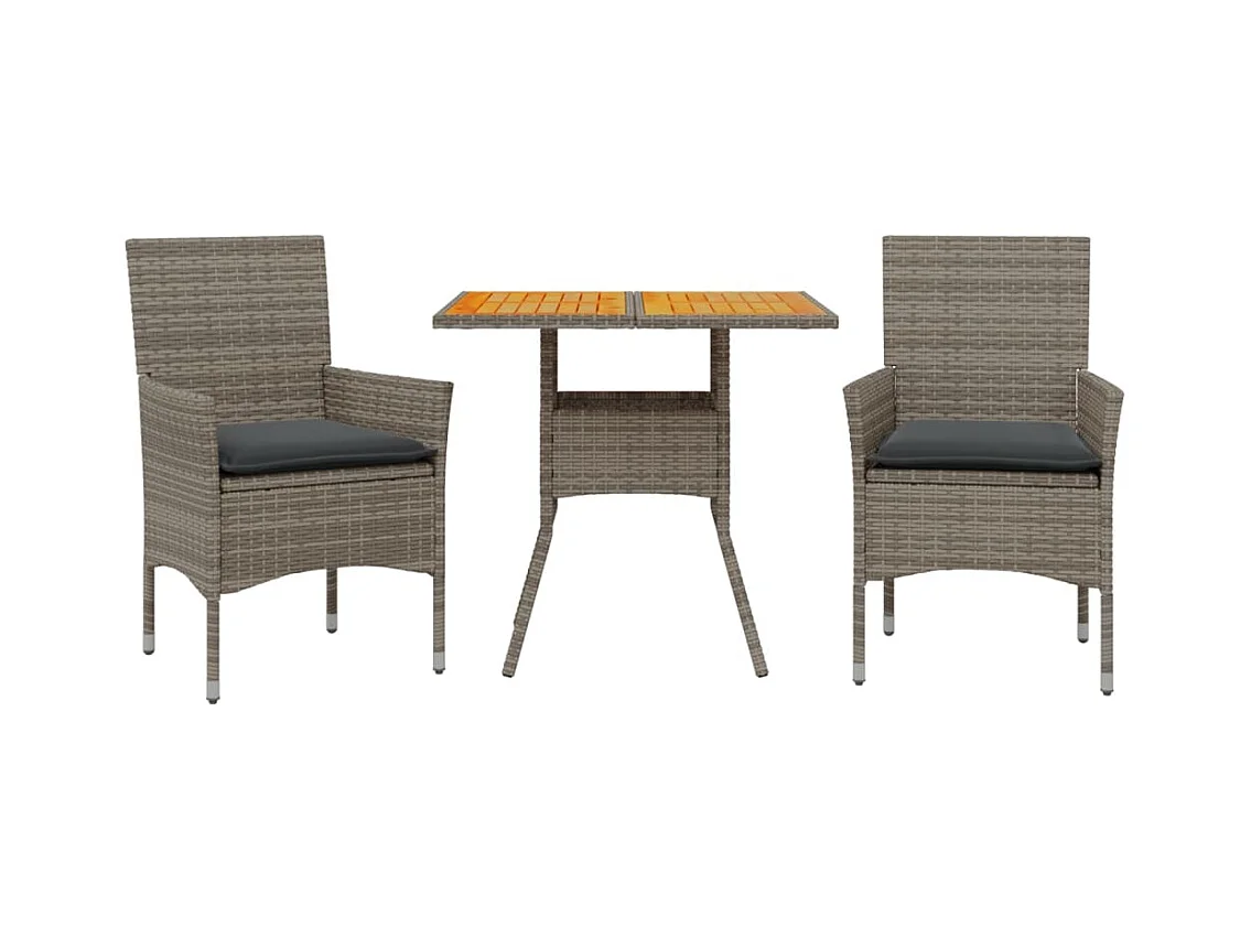 Motta Sant'Anastasia Ensemble à manger de jardin et coussins 3 pcs gris rotin acacia